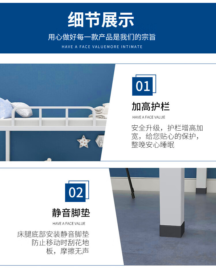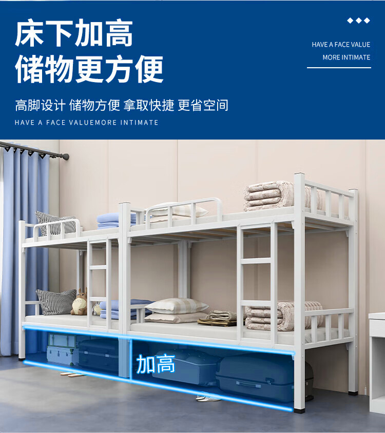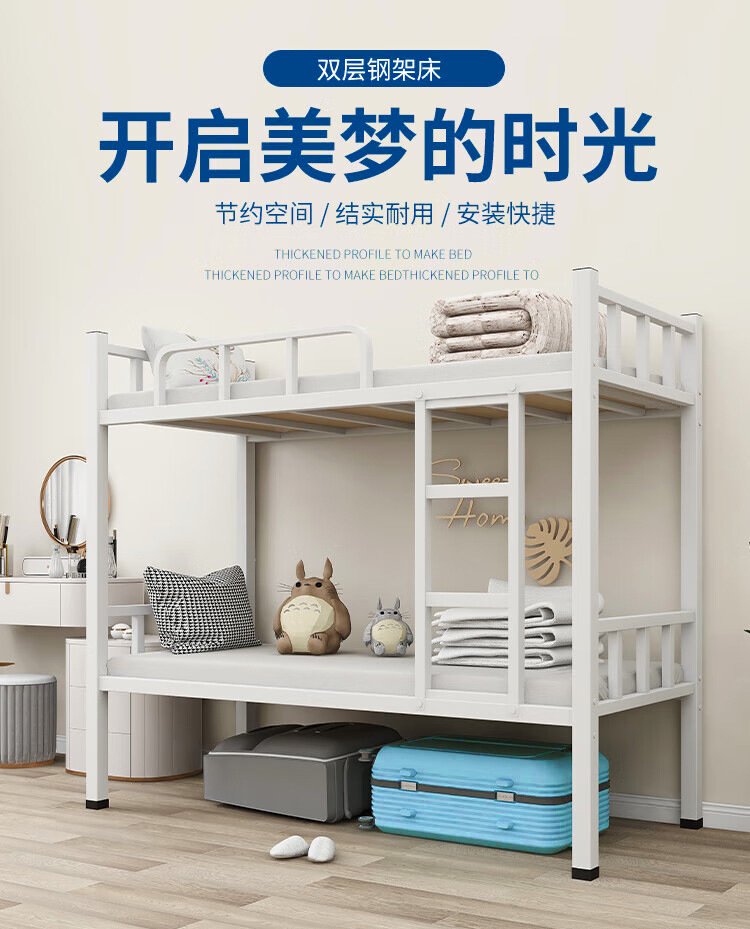 학교 기숙사 아파트 침대 이층 침대 아이언 침대 이층 작업 침대 높고 낮은 철 프레임 침대 사각 파이프 기숙사 더블스토어 가기