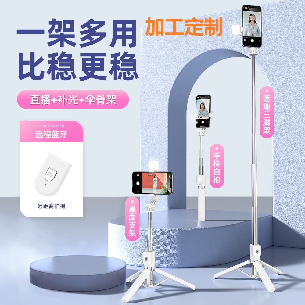 휴대 전화 셀카 스틱 도매 블루투스 원격 제어 채우기 빛 데스크탑 바닥 강화 삼각대 통합 라이브 방송 브래킷