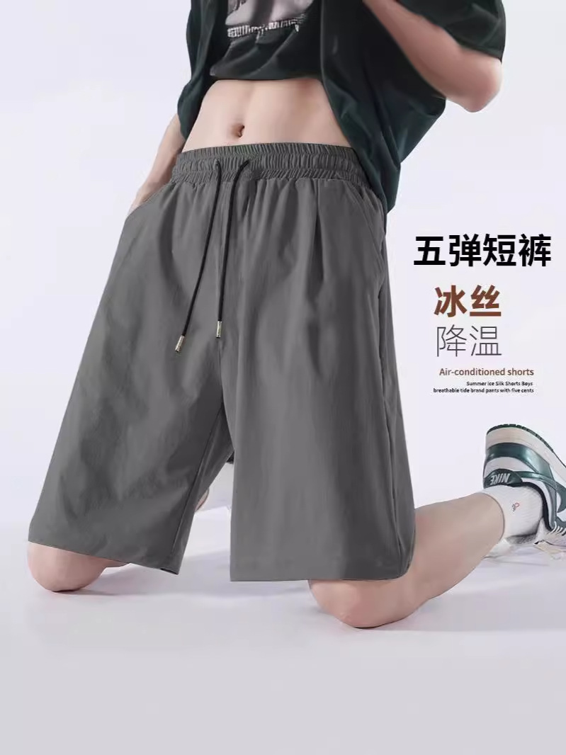 캐주얼 반바지 여름 얇은 남자 스포츠 홈 바지 느슨한 블랙 아이스 실크 5 남자 바지 반바지스토어 가기