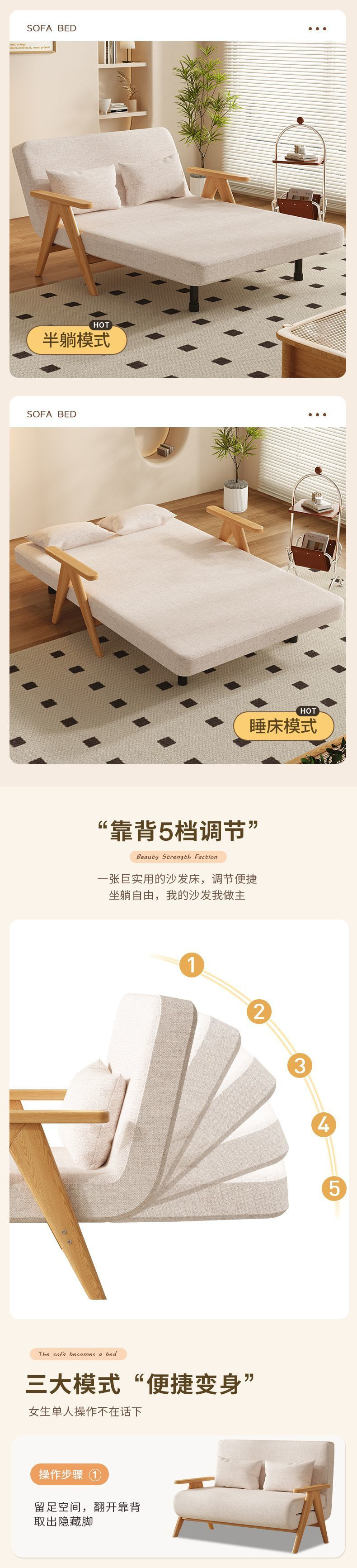 • 오프화이트 소파베드 + 오크색상 [업그레이드 및 보강]