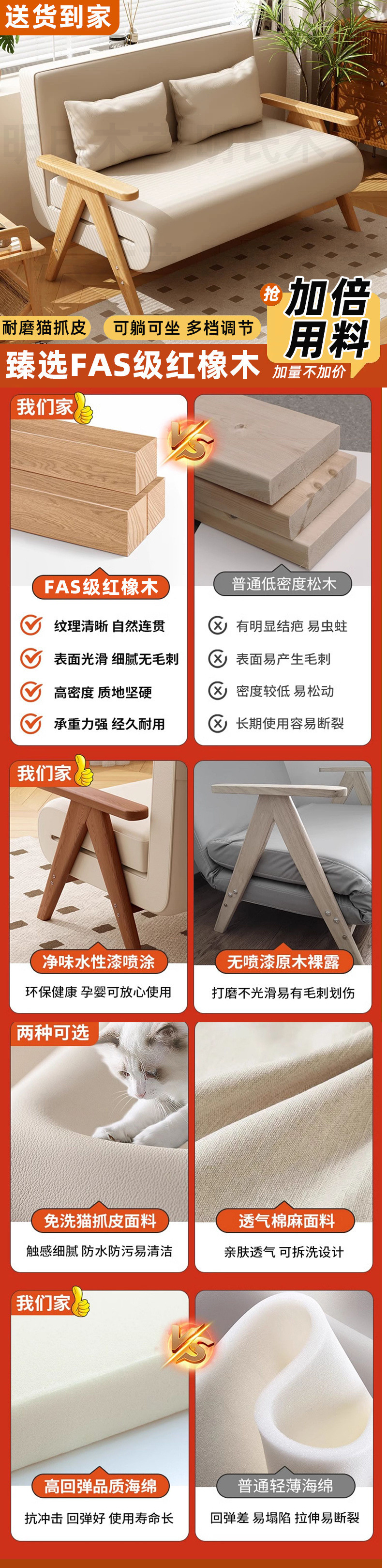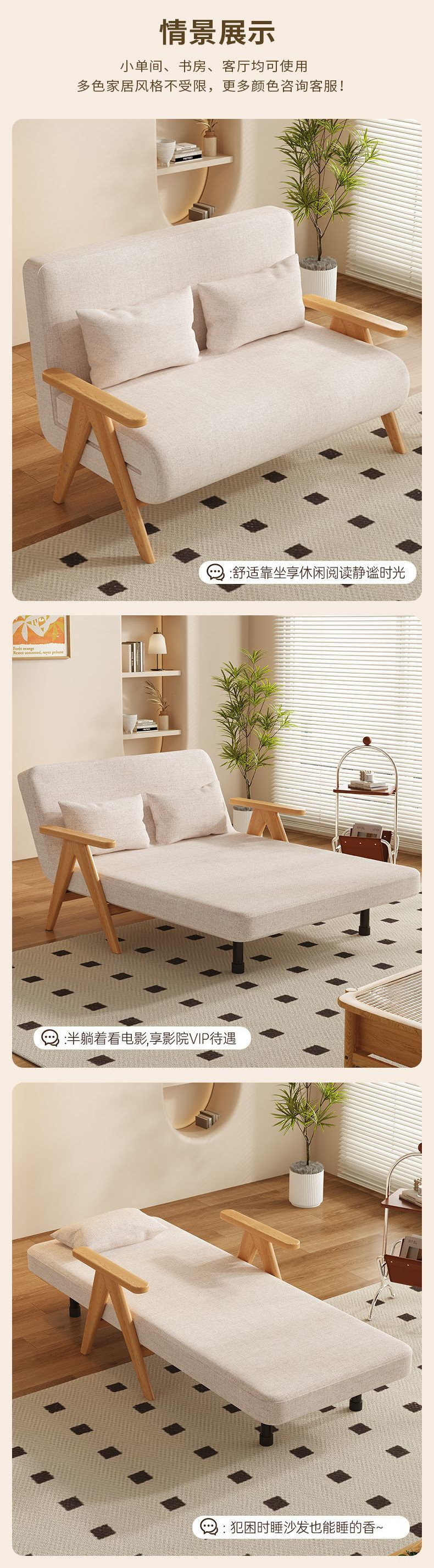 단단한 나무 게으른 소파 침대 접이식 이중 목적 작은 아파트 가구 새로운 슬리핑 소파 개폐식 공장 머리스토어 가기