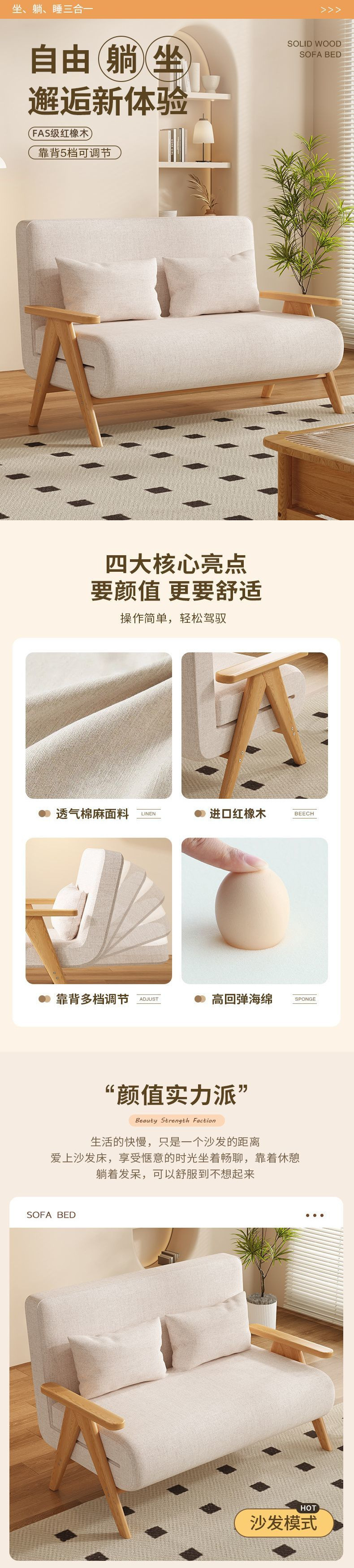 • 에르메스 오렌지 소파베드 + 오크 컬러 [업그레이드 및 보강]