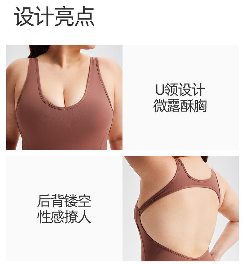 국경 간 뉴 라이카 U 타이 코튼 컵 스포츠 원바디 세트 여자 여름 하이 탄성 플러스 사이즈 피트니스 스포츠 원바디 세트
