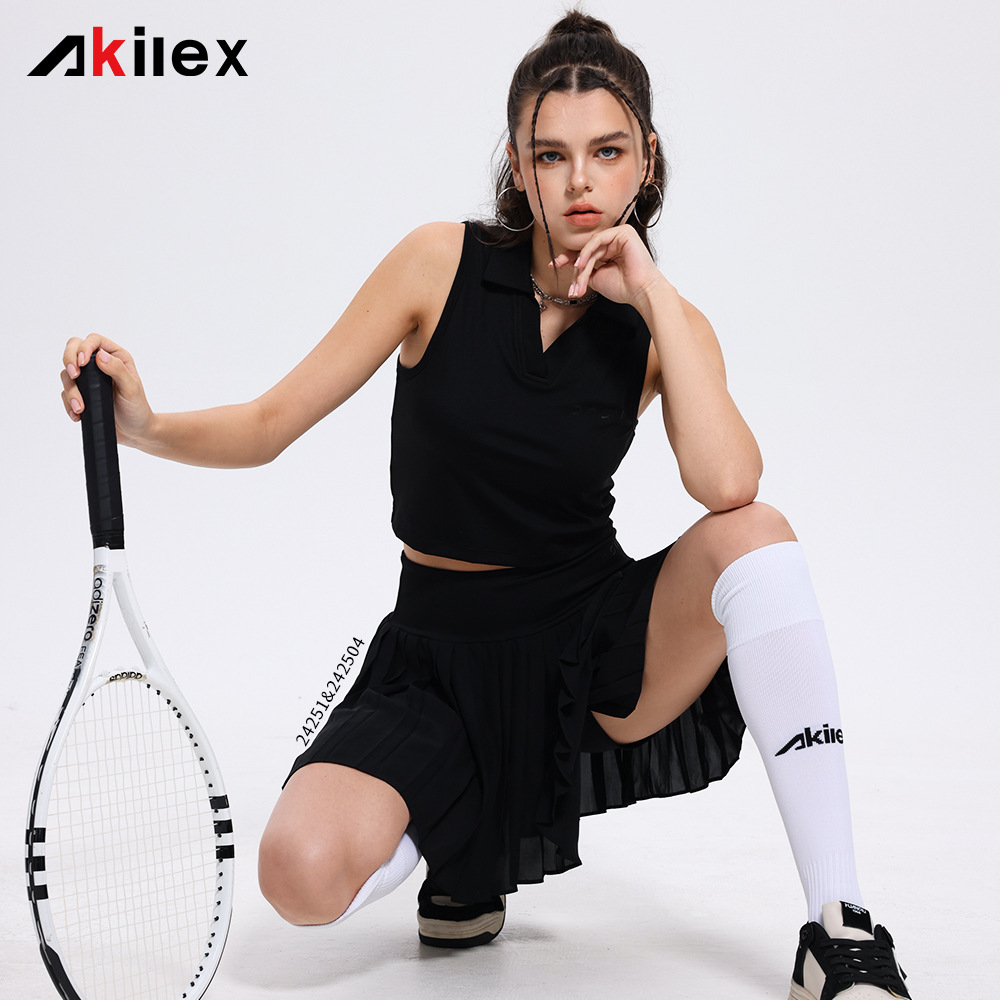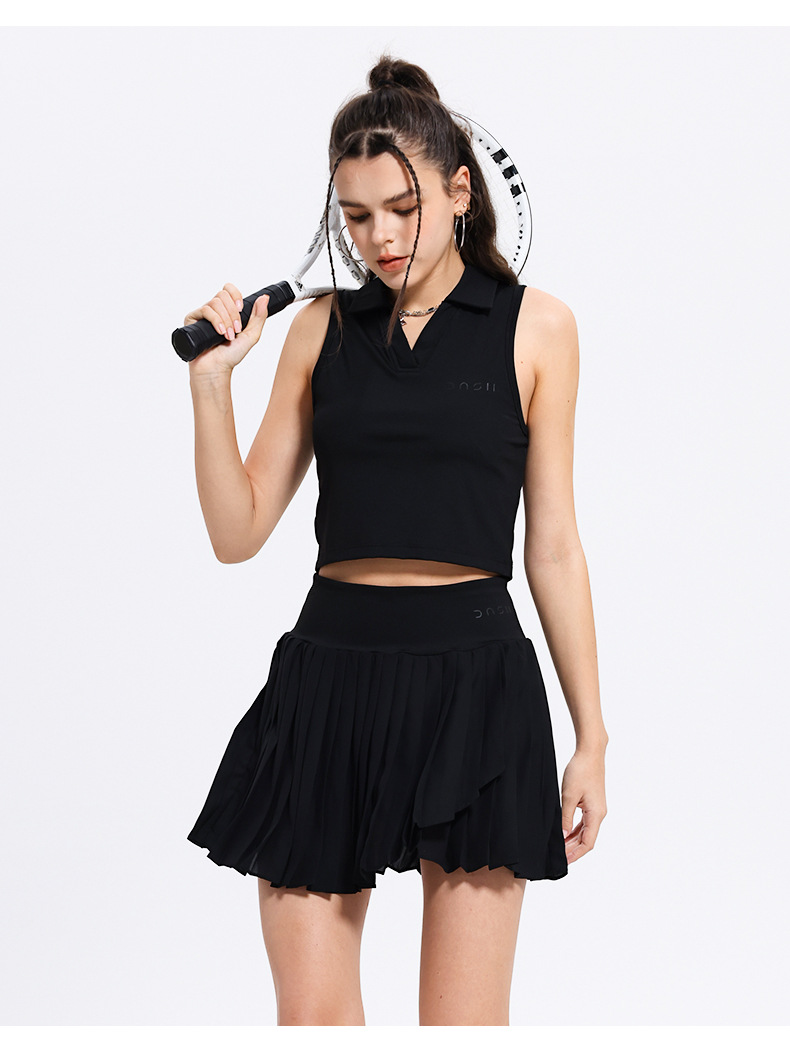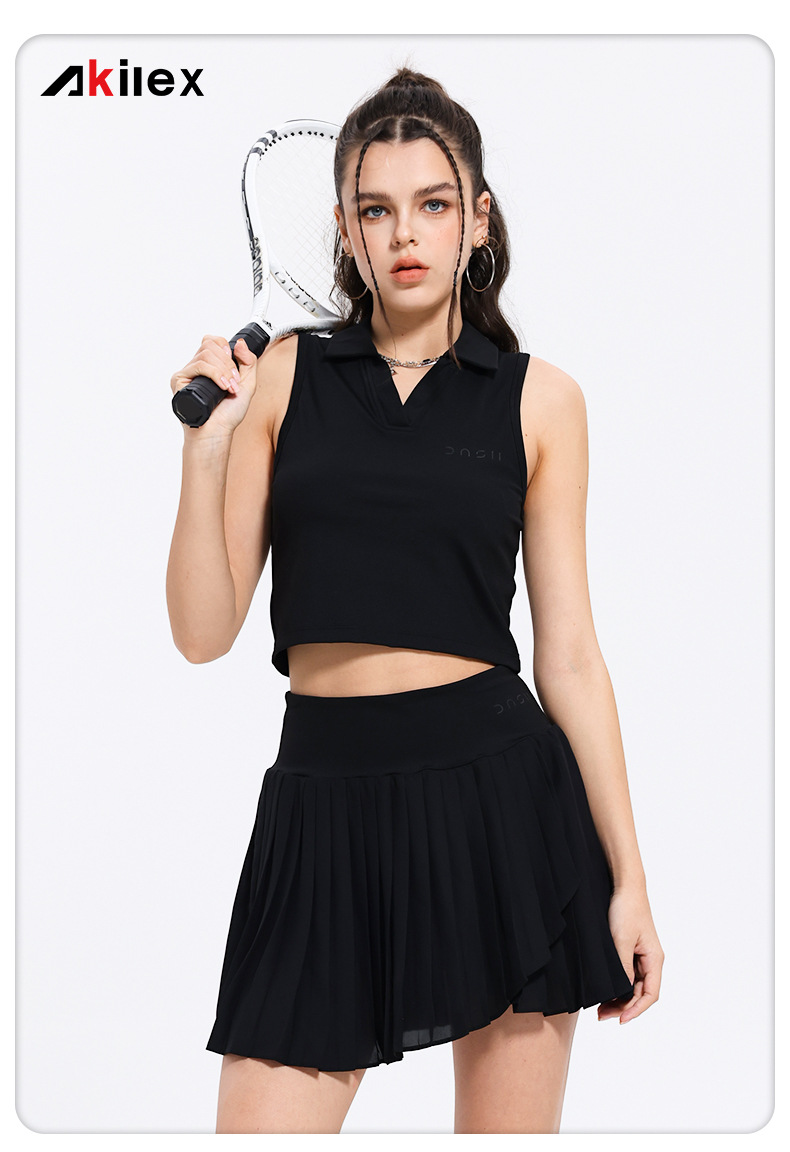 여성을위한 민소매 테니스 정장 맞춤형 새로운 골프 요가 스커트 여름 스포츠 게임 스커트 투피스 세트스토어 가기