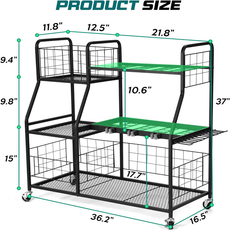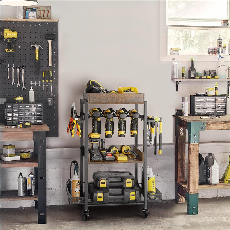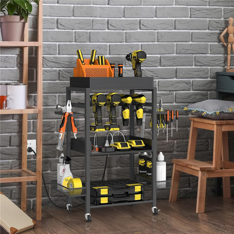 바퀴가 달린 정원 도구 보관 랙 전원 도구 저장 상자 도구 홀더 마무리 스토리지 랙