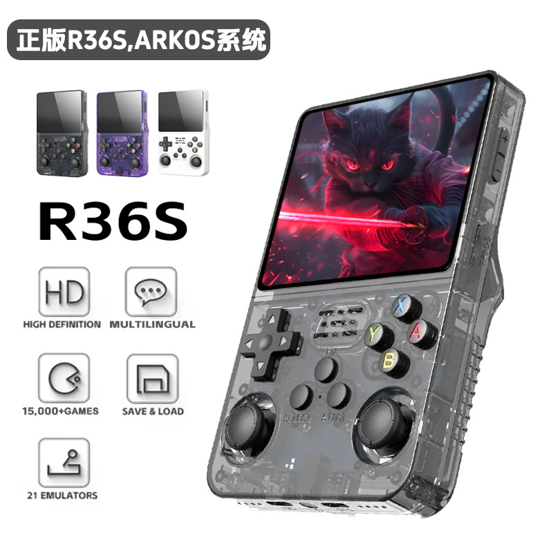 새로운 R36S 오픈 소스 휴대용 게임 콘솔 휴대용 휴대용 콘솔 레트로 GBA 아케이드 클래식 PSP 듀얼 시스템 국경스토어 가기