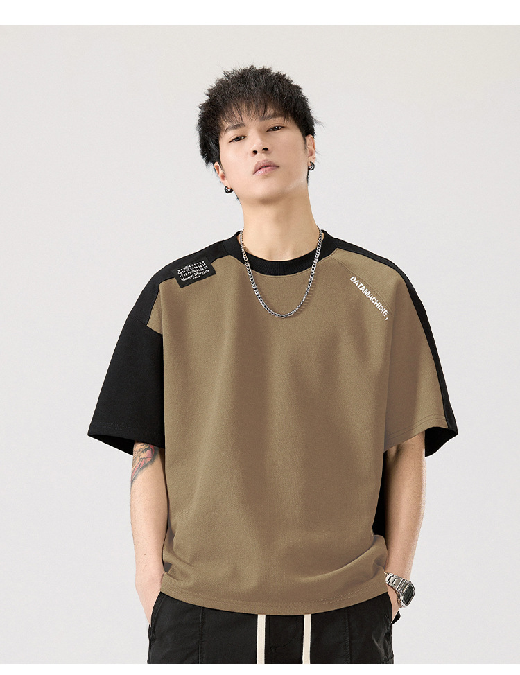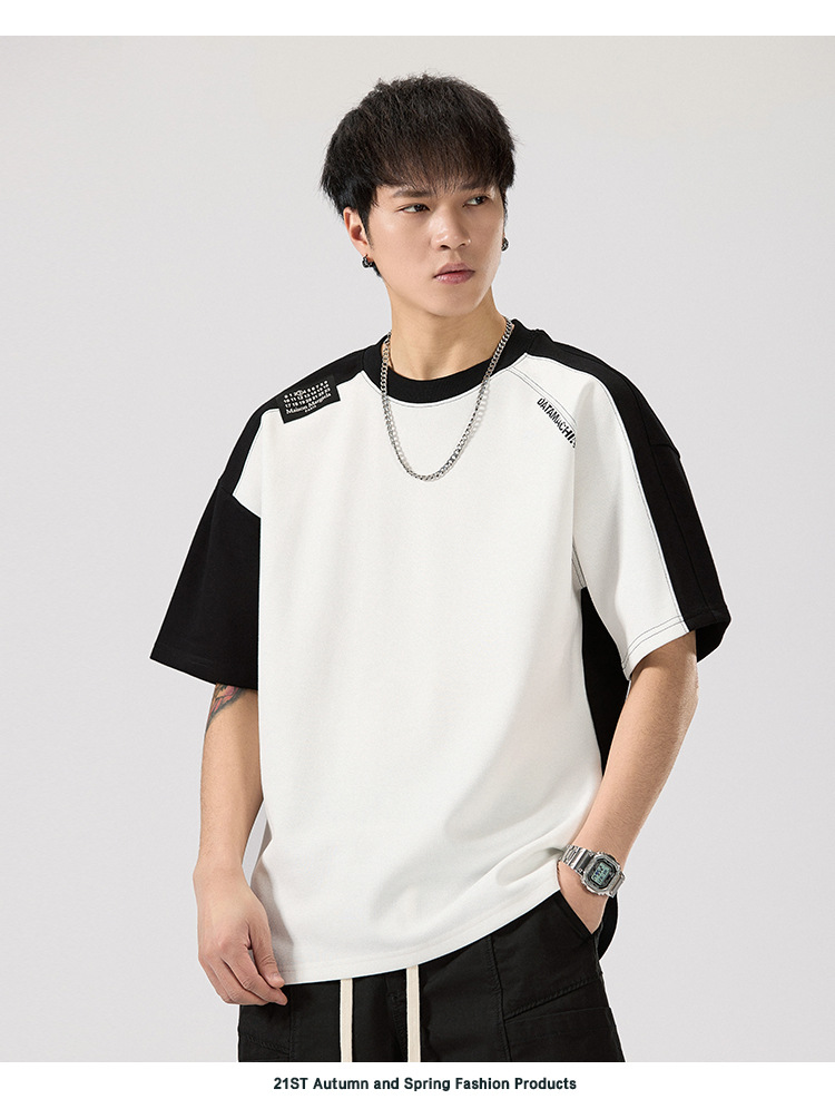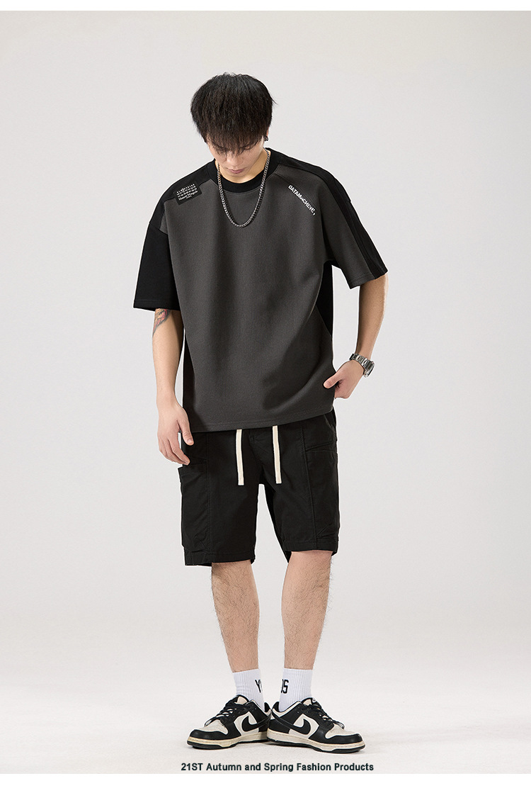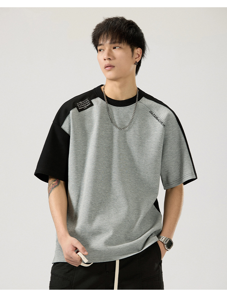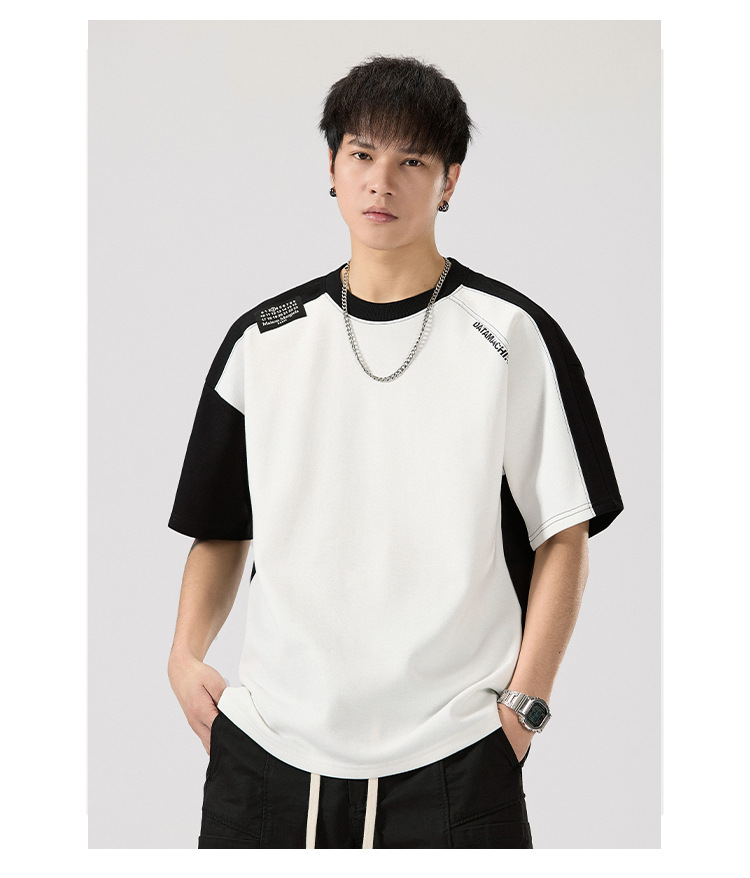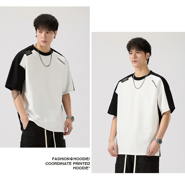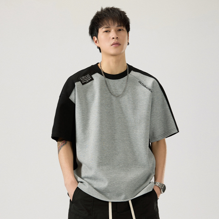 2025 새로운 헤비 컬러 매칭 라글란 슬리브 라운드 넥 반팔 티셔츠 남성용 루즈 플러스 사이즈 라글란 핸섬 캐주얼 반소매 티셔츠스토어 가기