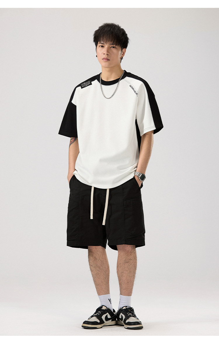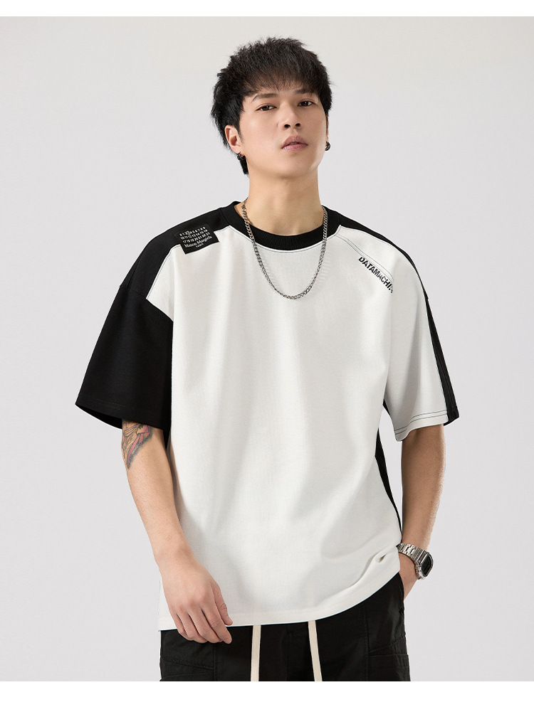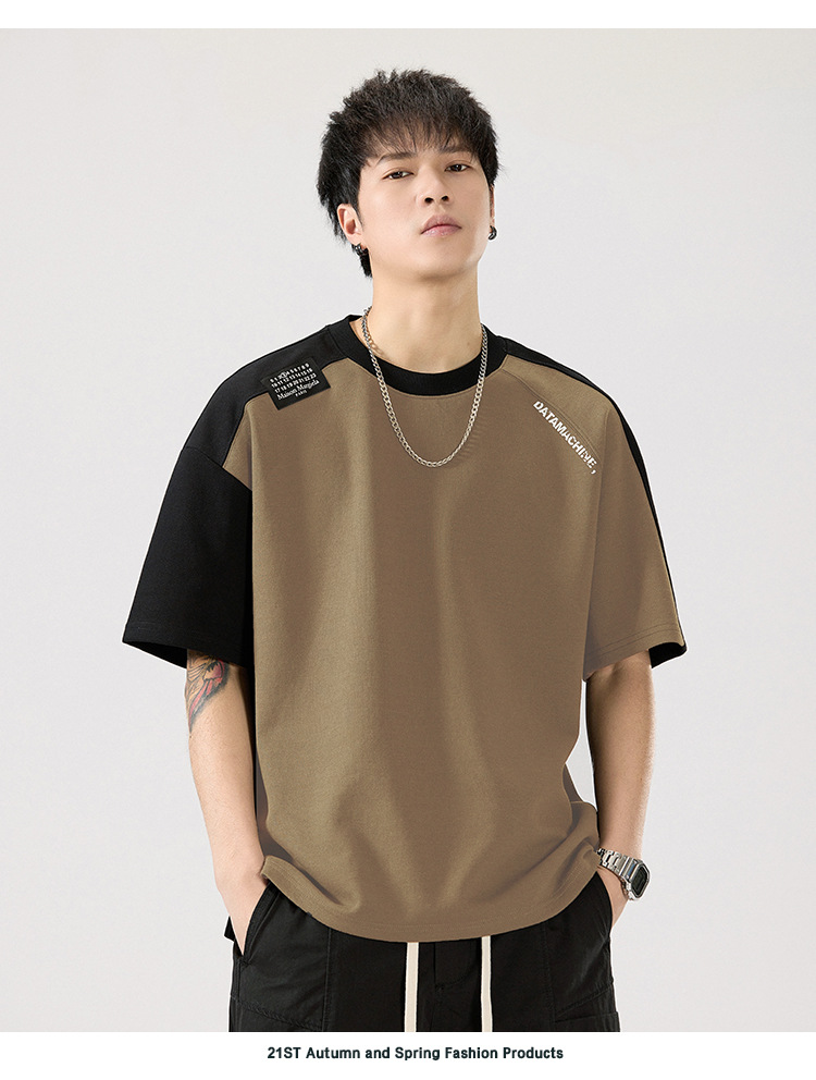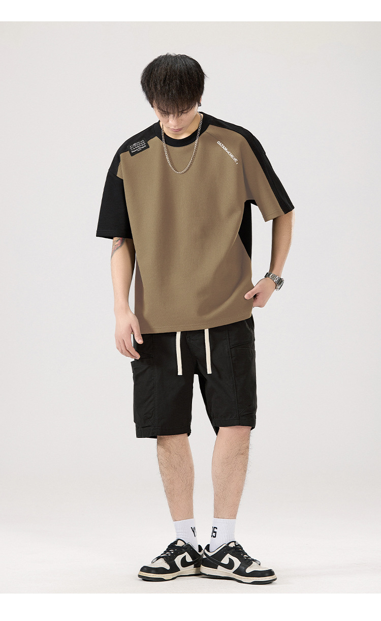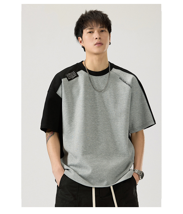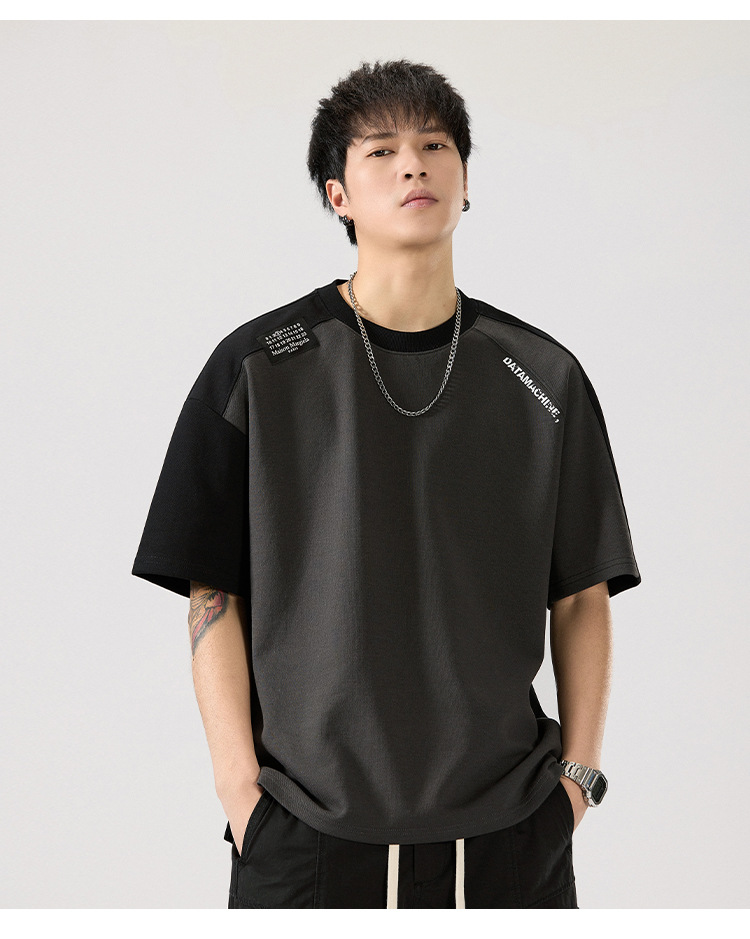 2025 새로운 헤비 컬러 매칭 라글란 슬리브 라운드 넥 반팔 티셔츠 남성용 루즈 플러스 사이즈 라글란 핸섬 캐주얼 반소매 티셔츠스토어 가기