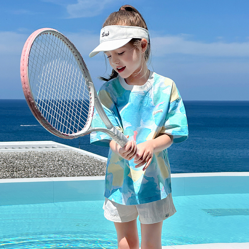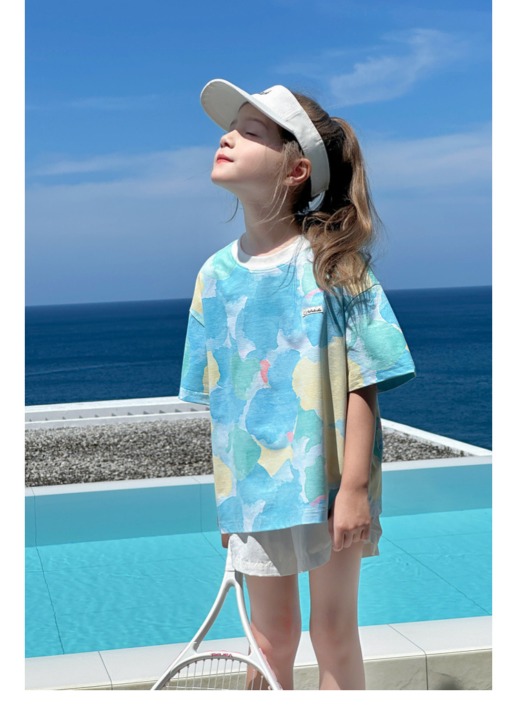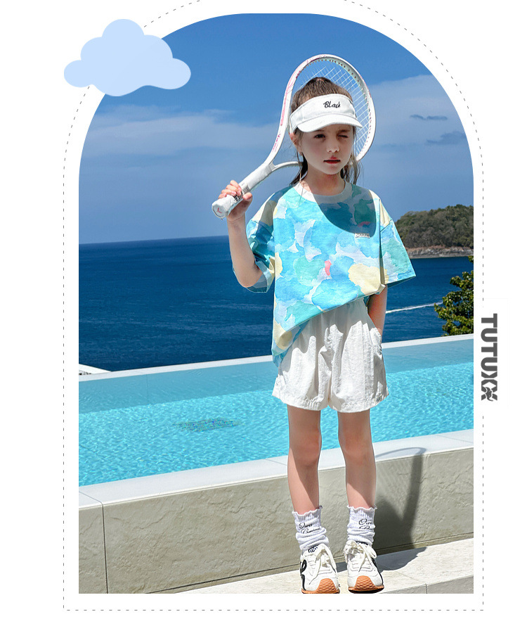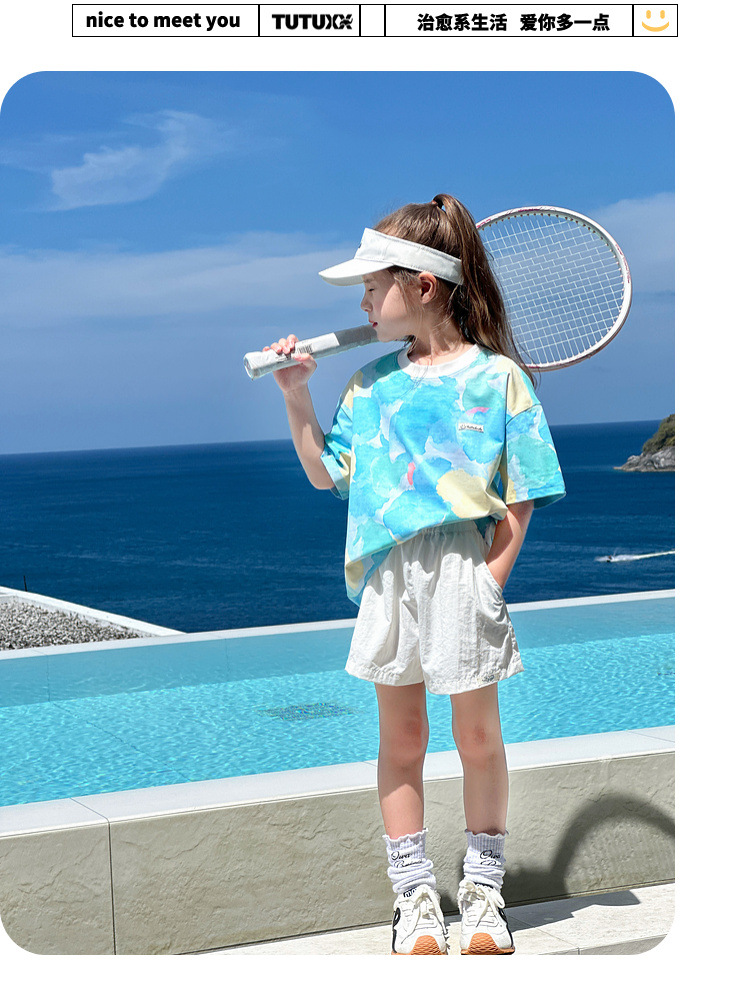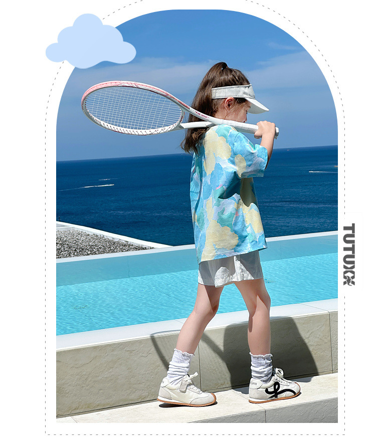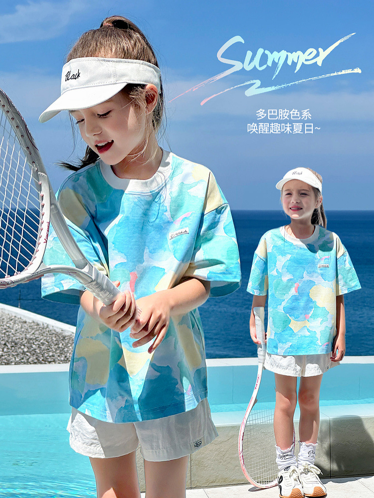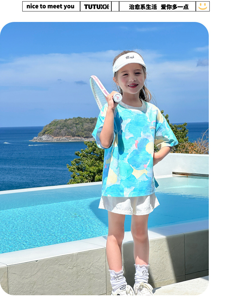 TUTU 아기코끼리 여아 반팔 2026 봄 신상 아동용 솔로나 상의 여름 부모-자녀 바다소금 속건 티셔츠스토어 가기
