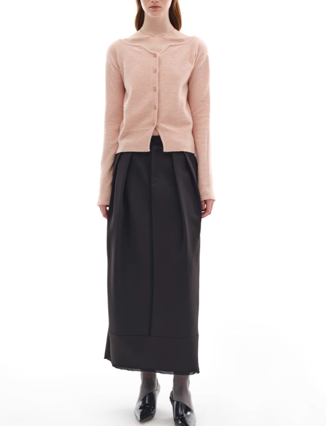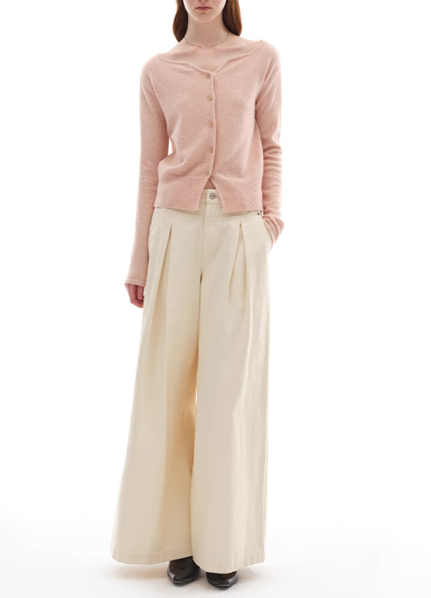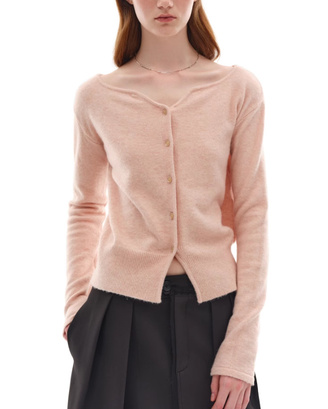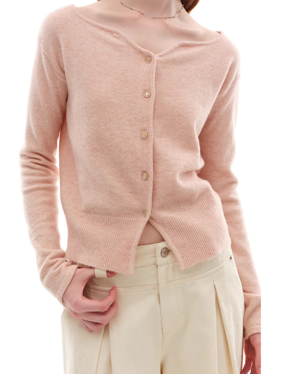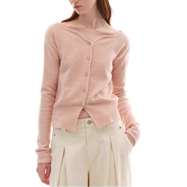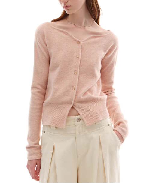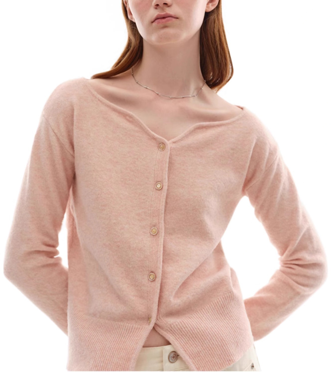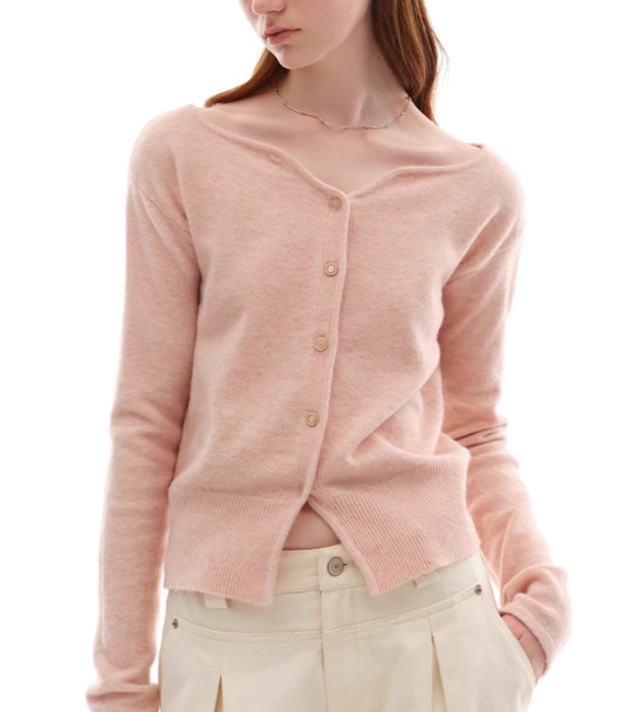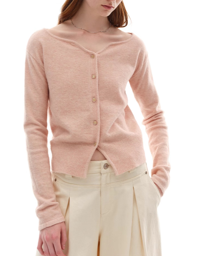 누군가 때때로 양모 블렌드 물결 V-Neck 경량 화이트 복숭아 니트 카디건 스웨터 재킷스토어 가기