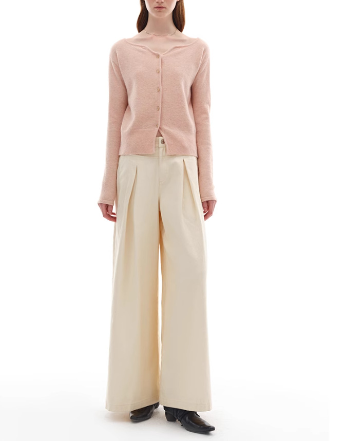 누군가 때때로 양모 블렌드 물결 V-Neck 경량 화이트 복숭아 니트 카디건 스웨터 재킷