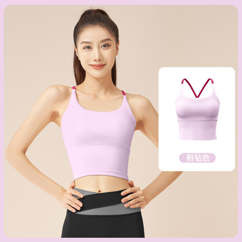 새로운 솔리드 컬러 스티치 요가 세트 충격 방지 수집 원활한 아름다운 다시 스포츠 피트니스 의류 조끼 여성 통기성스토어 가기