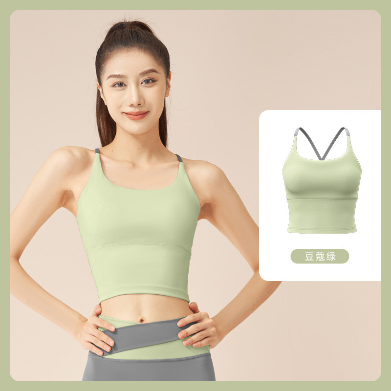 새로운 솔리드 컬러 스티치 요가 세트 충격 방지 수집 원활한 아름다운 다시 스포츠 피트니스 의류 조끼 여성 통기성