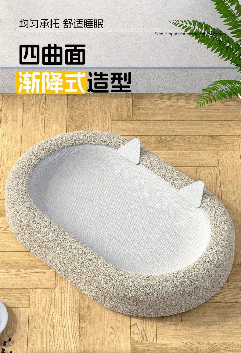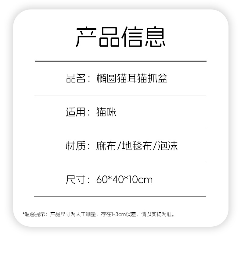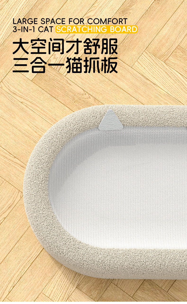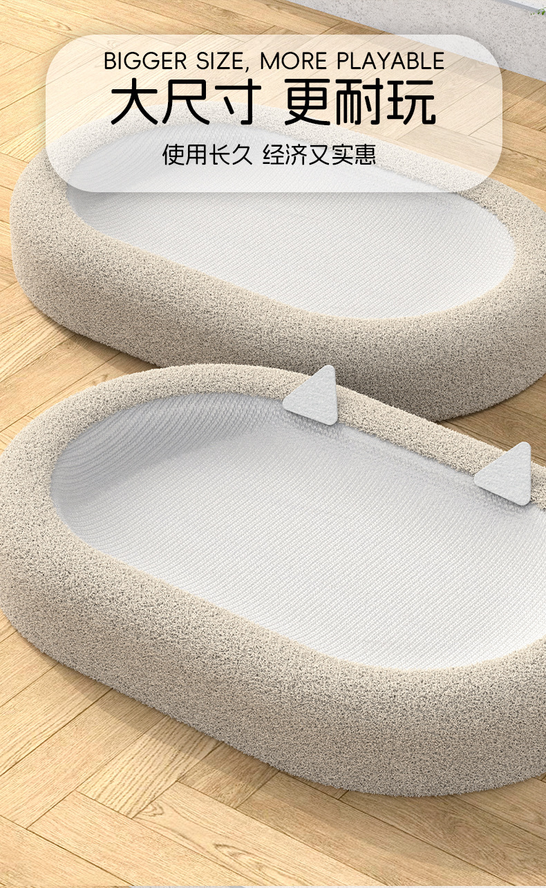 • 모조 린넨 천 타원형 고양이 긁는 분지