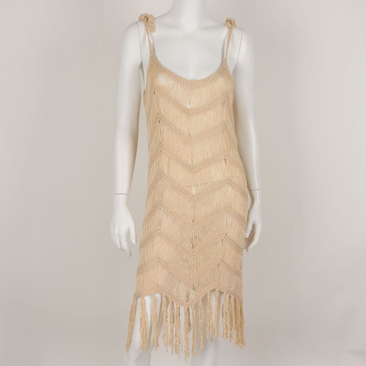 2026 유럽 및 미국 해외 무역 화이트 비치 수영복, 레이스 아웃웨어, 백리스, 프린지 드레스