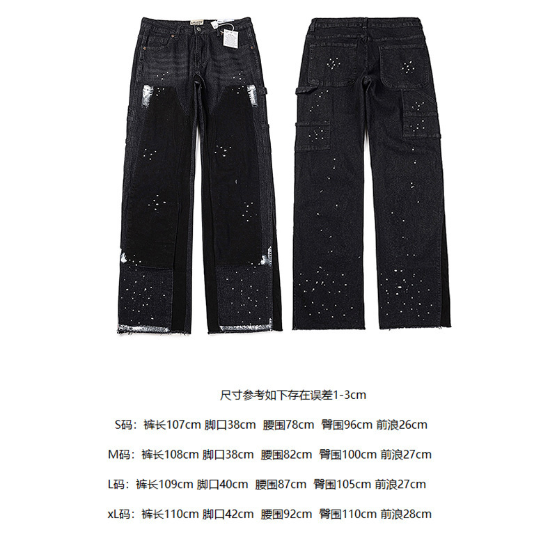 올바른 버전 갤러리 dept 찢어진 파우치 잉크 청바지 분위기 스타일 남성용 루즈 스트레이트 하이 스트리트 롱 바지스토어 가기