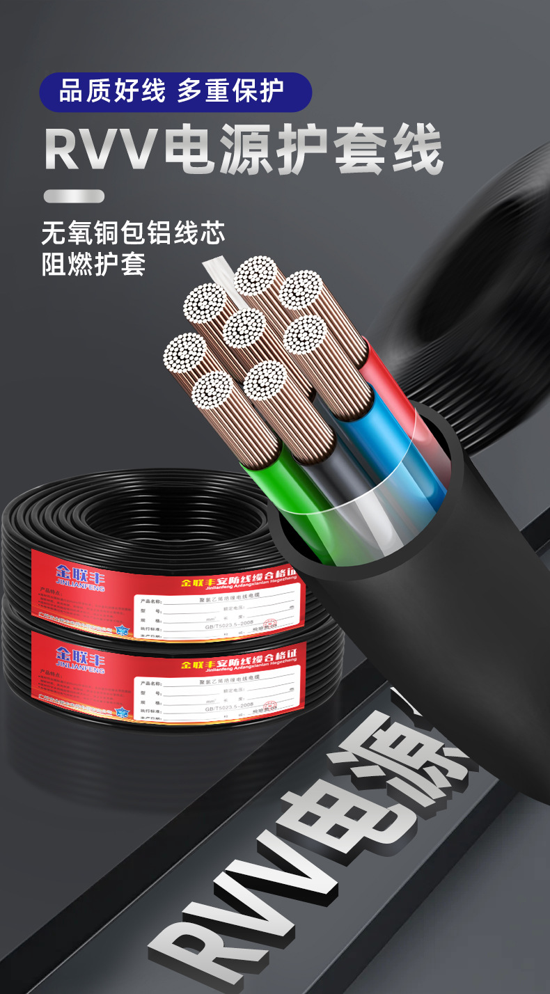 맞춤형 국가 표준 RVV 외장 와이어 다중 사각형 난연성 케이블 2 3 4 6 코어 전원 제어 와이어 제조업체 처리