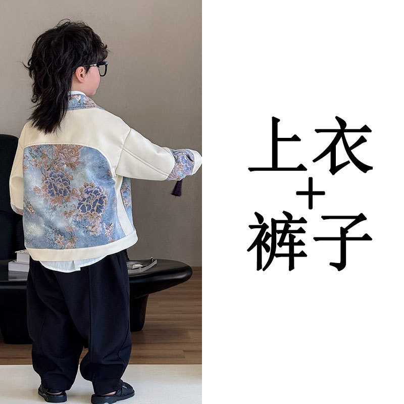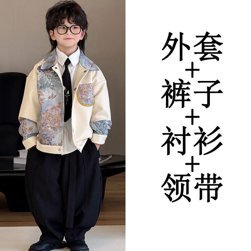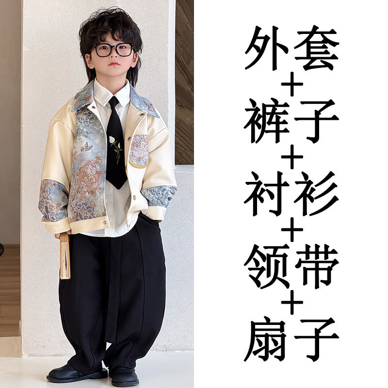 남학생 가죽 세트 2025 중국 스타일의 새로운 중국 어린이 가죽 소년 가죽 재킷 옷깃스토어 가기