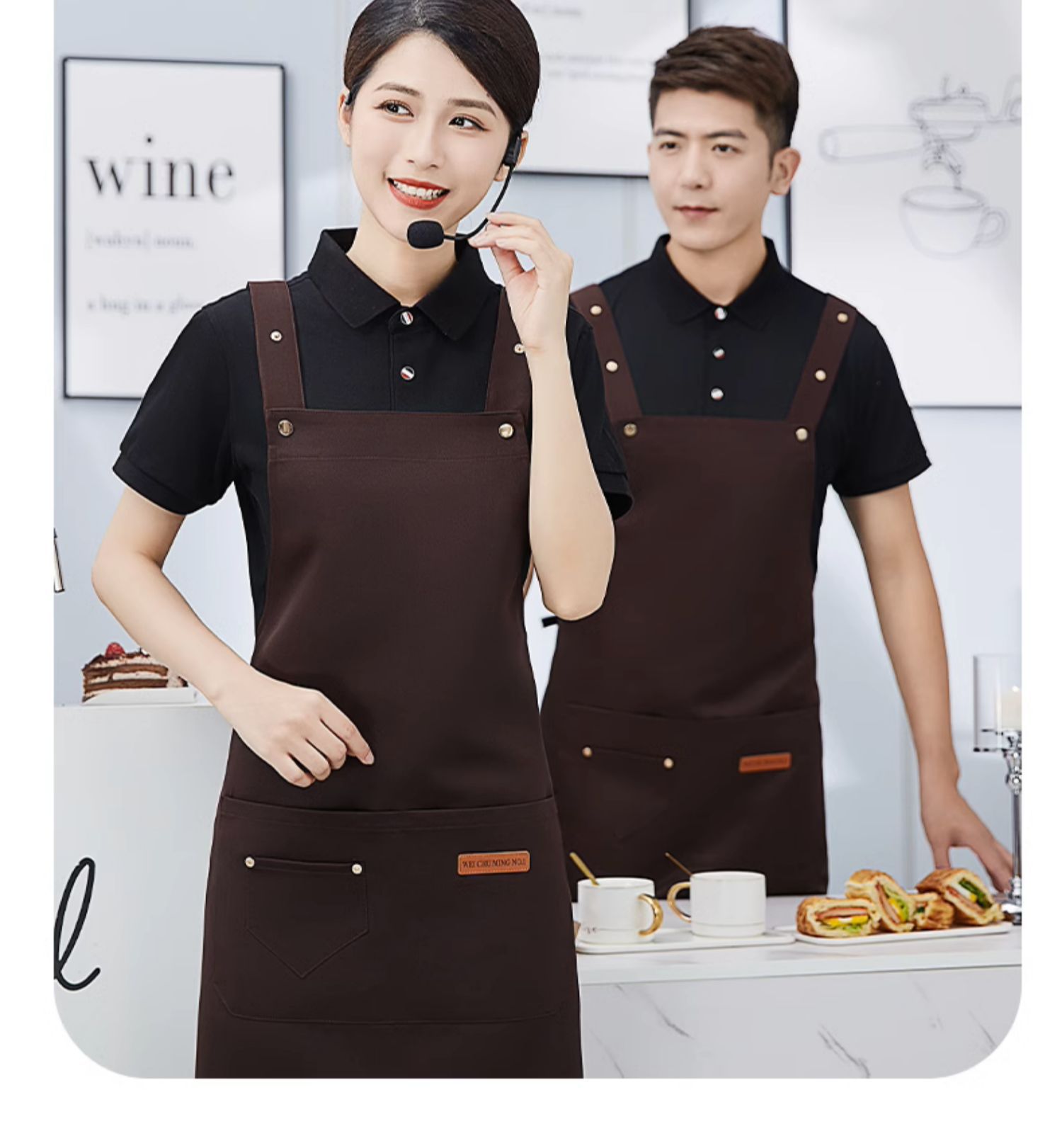 방수 광고 앞치마 케이터링 특별 로고 인쇄 커피 우유 차 가게 웨이터 슈퍼마켓 작업복 여성 맞춤