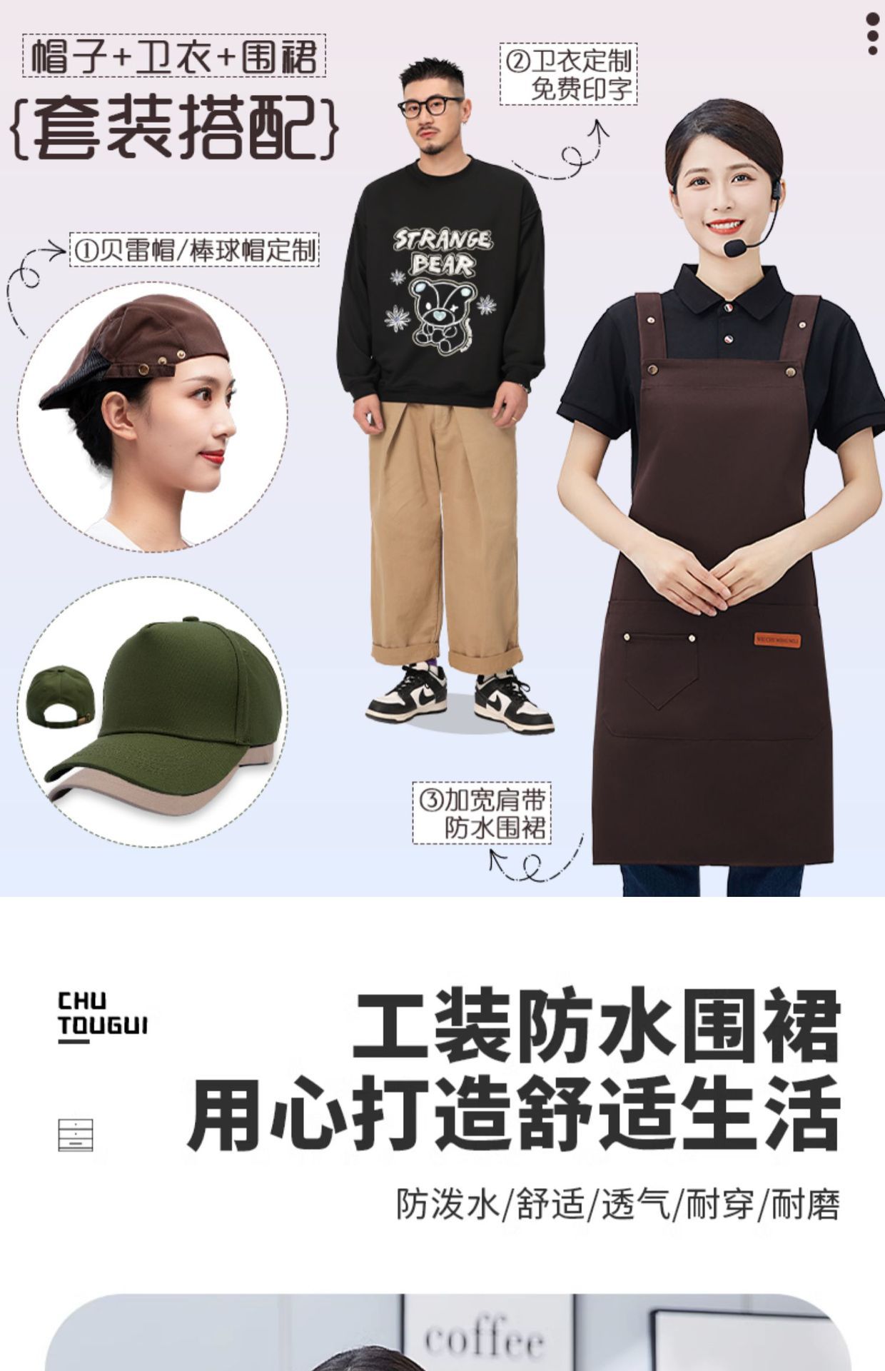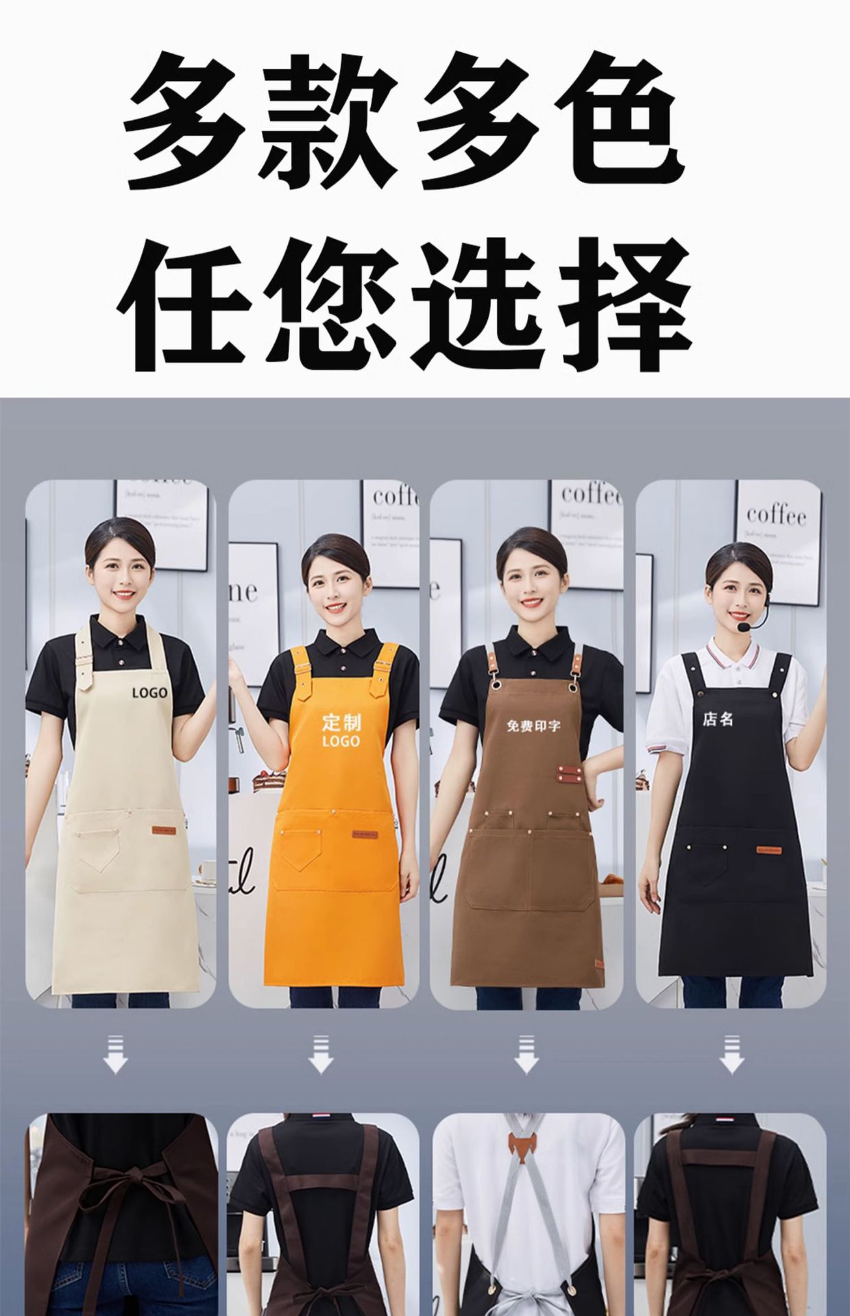방수 광고 앞치마 케이터링 특별 로고 인쇄 커피 우유 차 가게 웨이터 슈퍼마켓 작업복 여성 맞춤스토어 가기