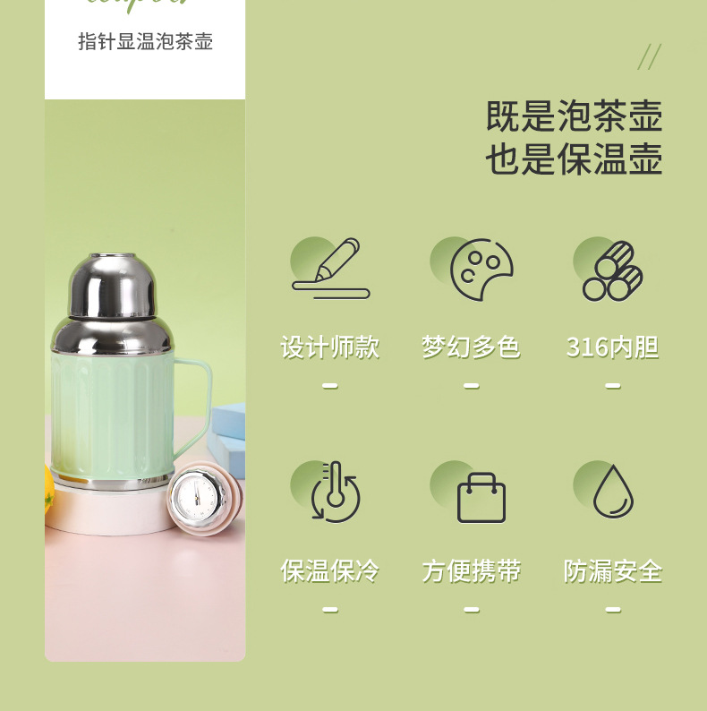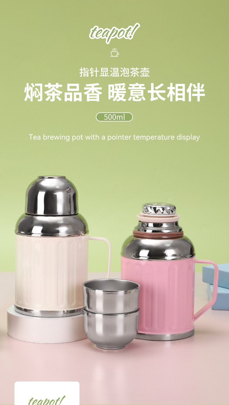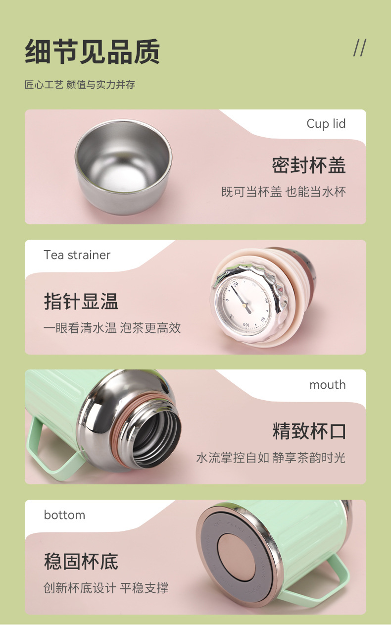 크리 에이 티브 레트로 기계 온도 디스플레이 주전자 316 스테인레스 스틸 보온병 컵 차 분리 핸들 작은 보온병스토어 가기