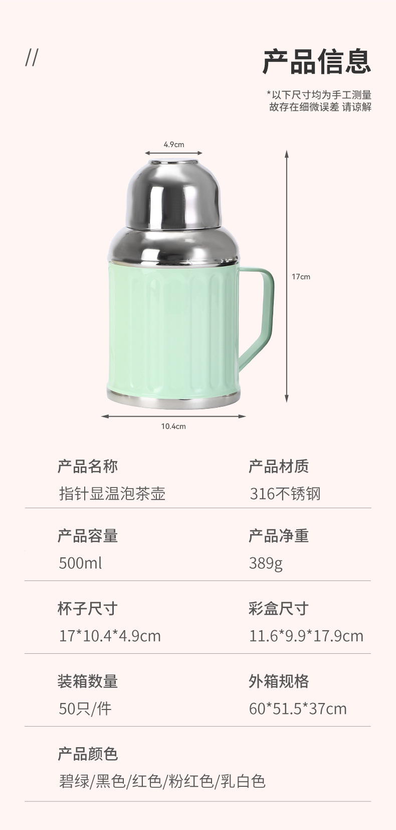 크리 에이 티브 레트로 기계 온도 디스플레이 주전자 316 스테인레스 스틸 보온병 컵 차 분리 핸들 작은 보온병