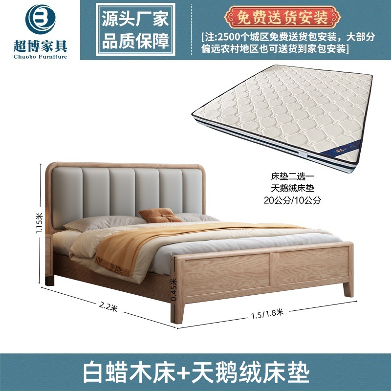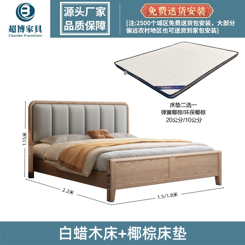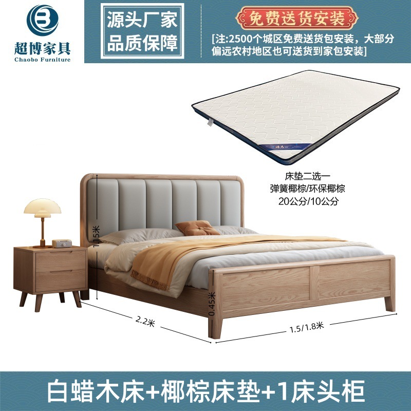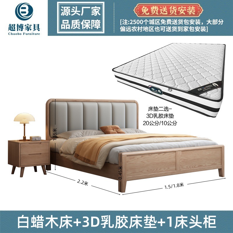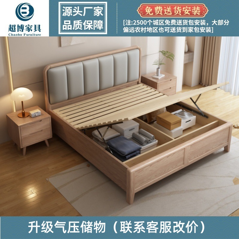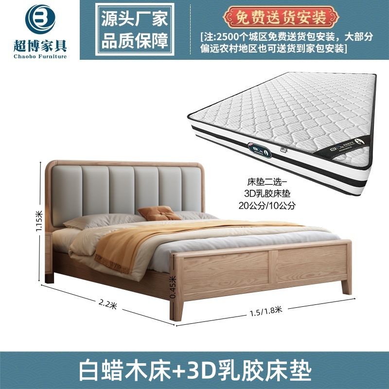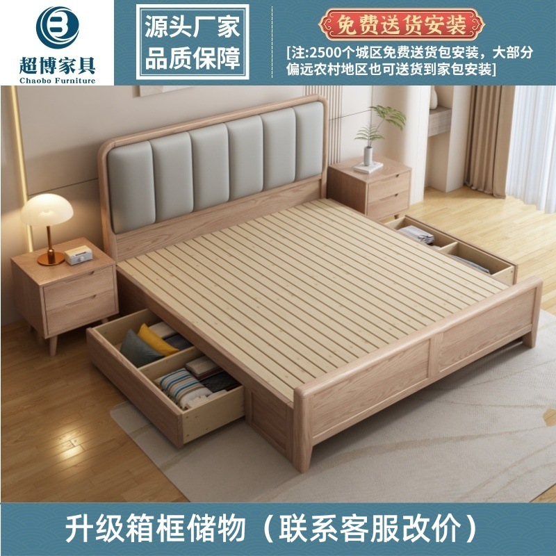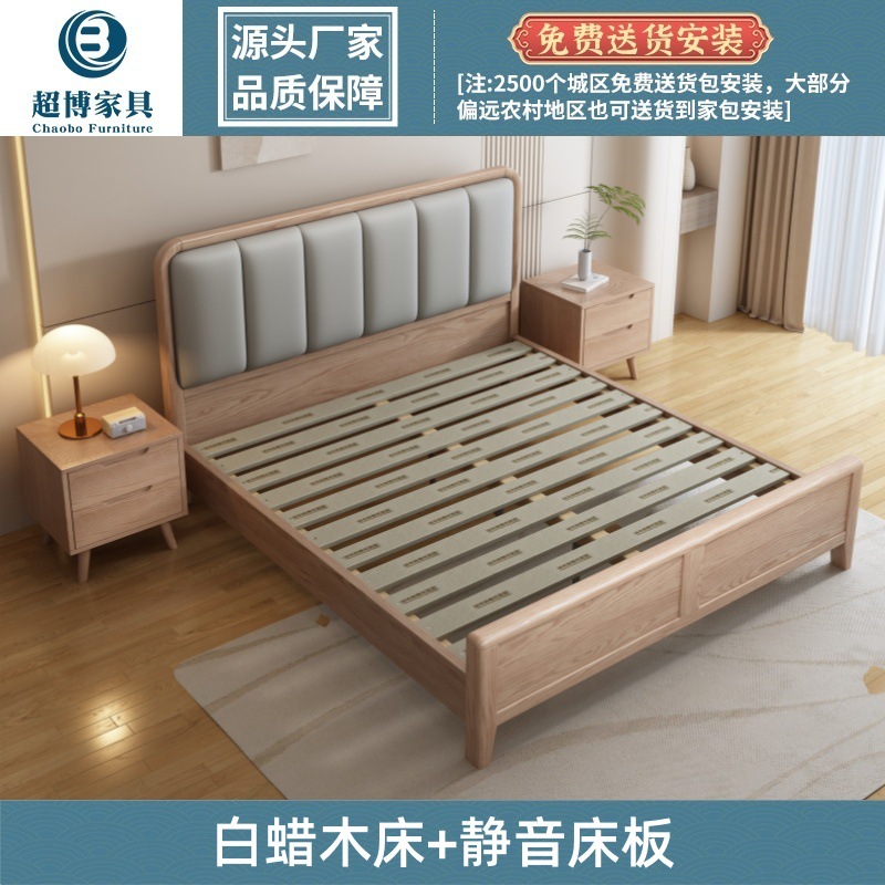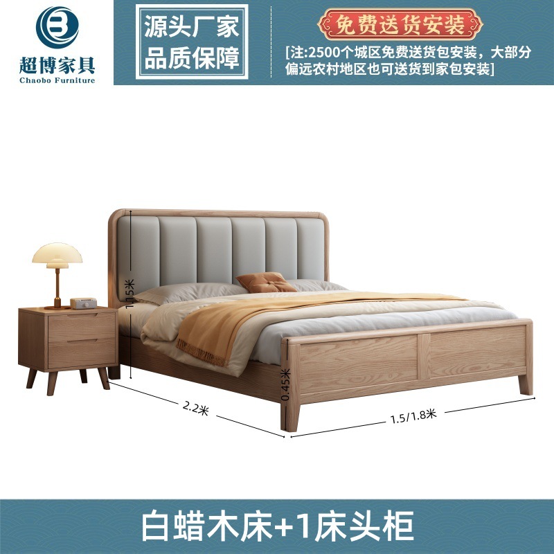 재 로그 일본식 부드러운 가방 단단한 나무 침대 마스터 침실 홈 더블 침대 단단한 나무 현대 간단한 침실 가구스토어 가기