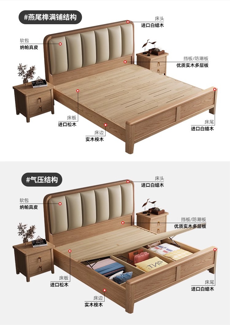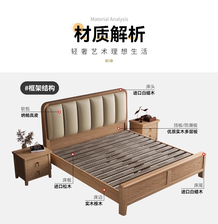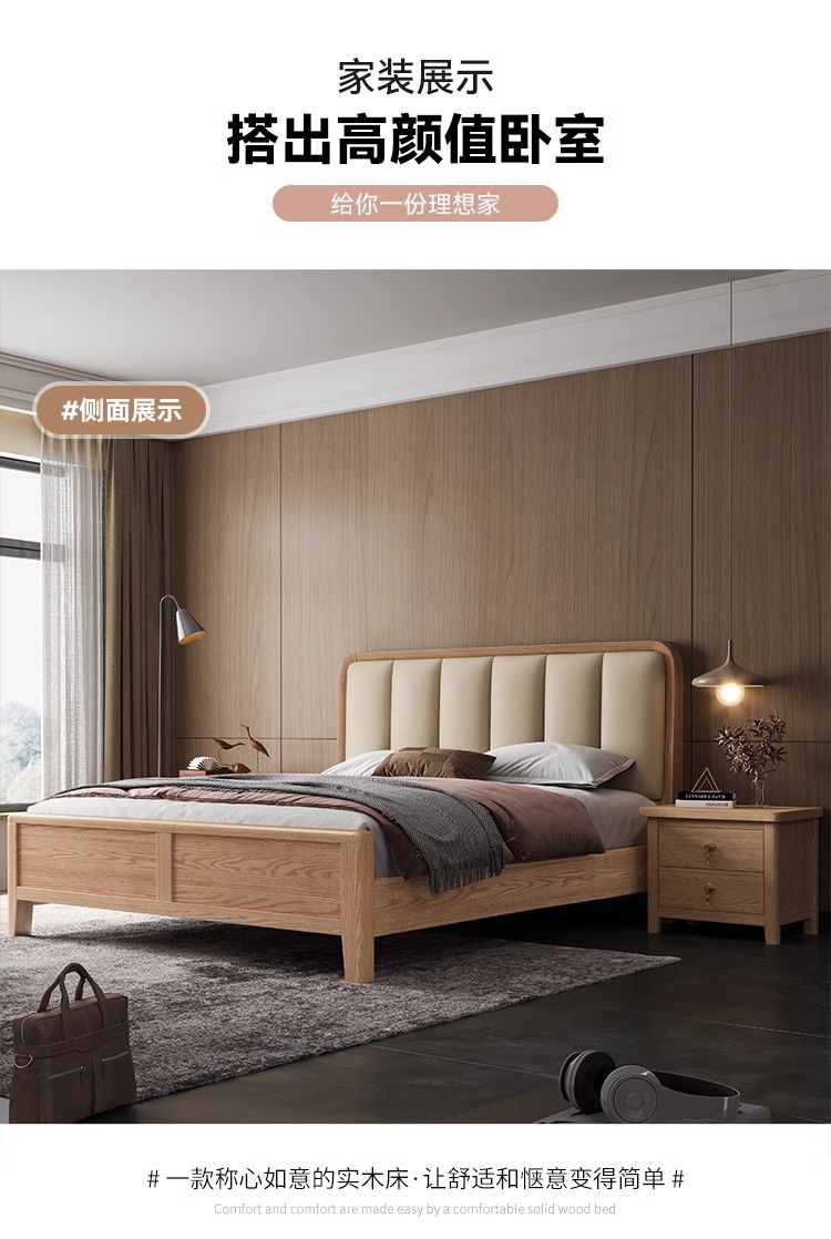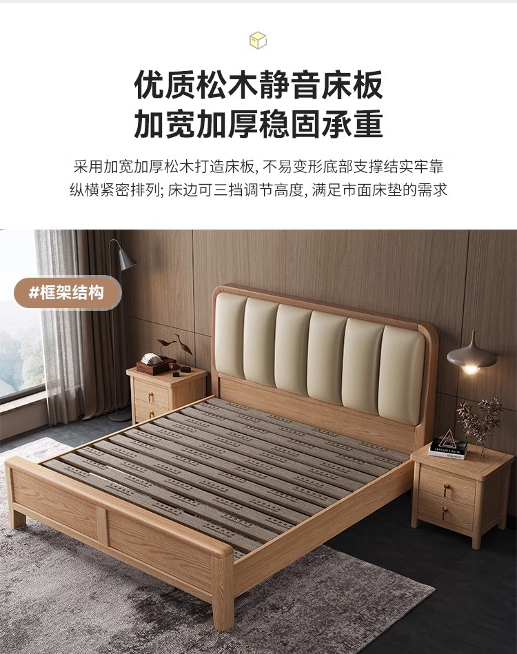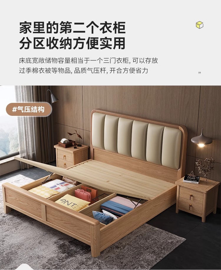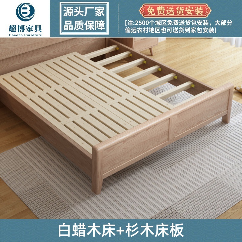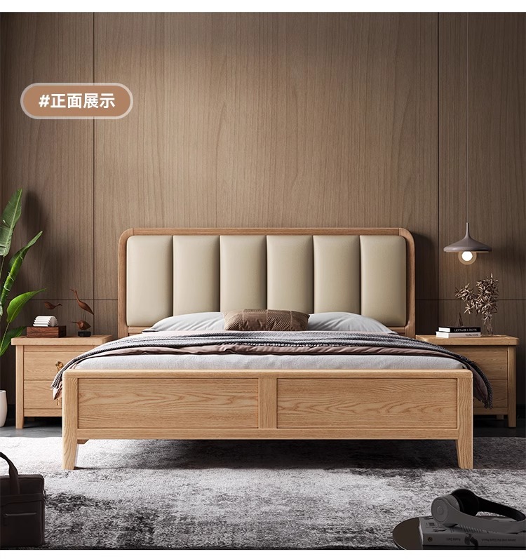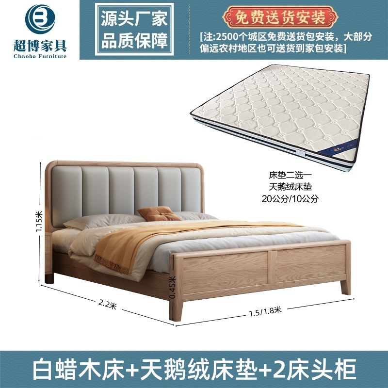 재 로그 일본식 부드러운 가방 단단한 나무 침대 마스터 침실 홈 더블 침대 단단한 나무 현대 간단한 침실 가구스토어 가기