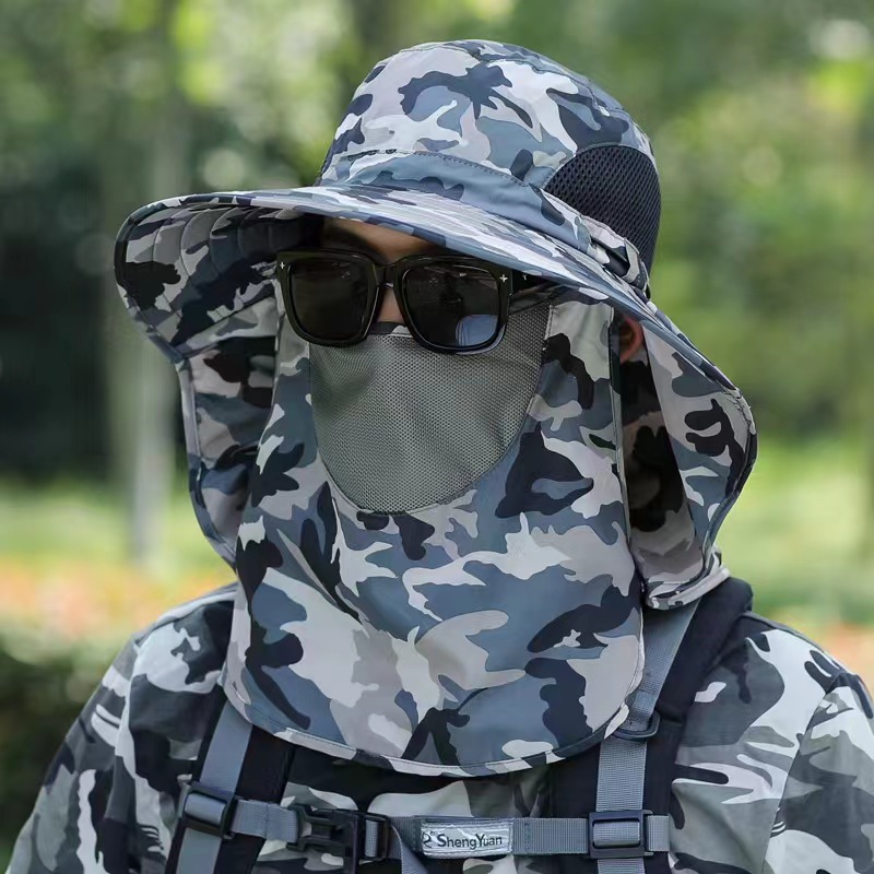 남성 위장 목도리 태양 모자 야외 통기성 태양 커버 얼굴 낚시 모자 관광 등산 분리 가능한 어부 모자