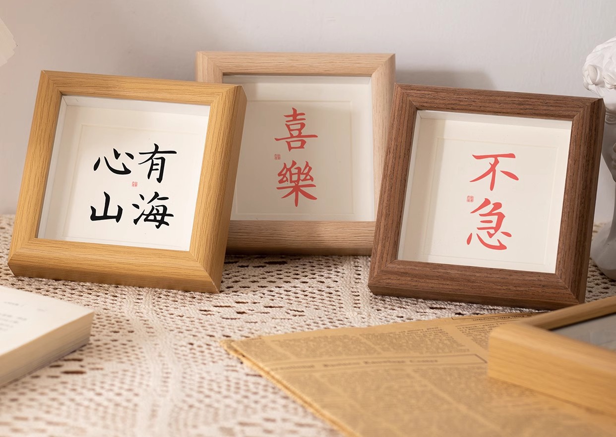 새로운 중국 광장 사진 프레임 세트 테이블 미니 유화 프레임 10*10 서예 결혼식 신참 선물 평화와 기쁨