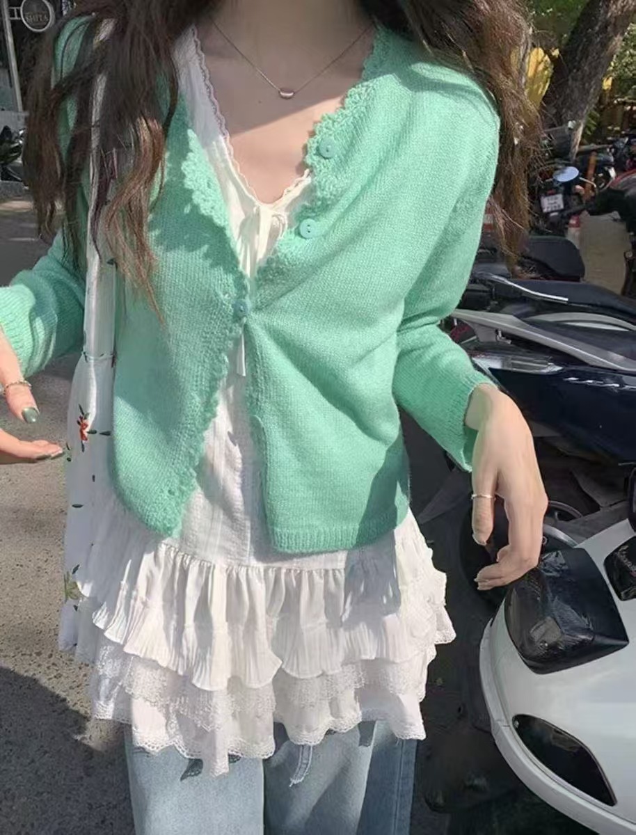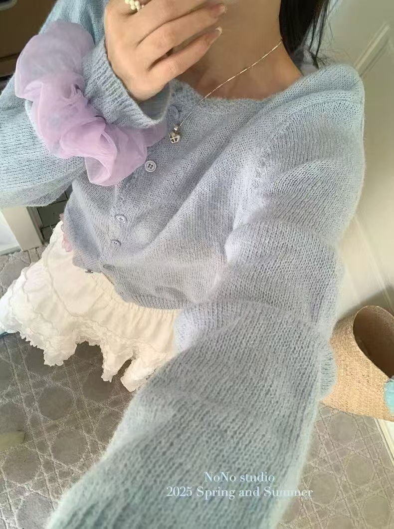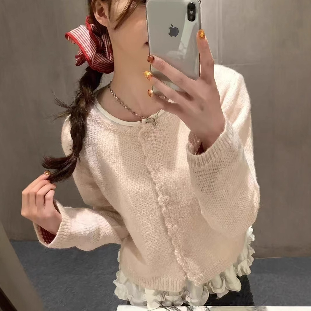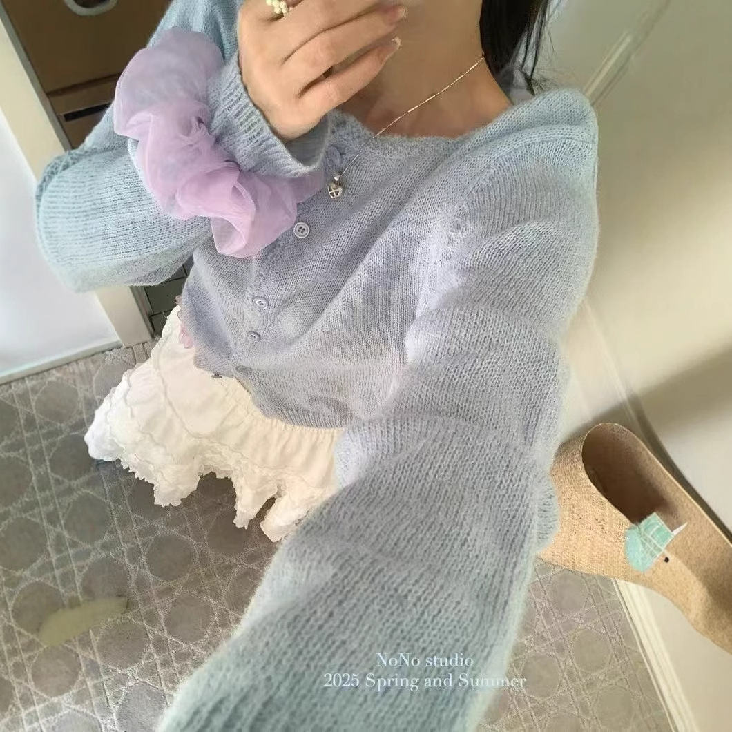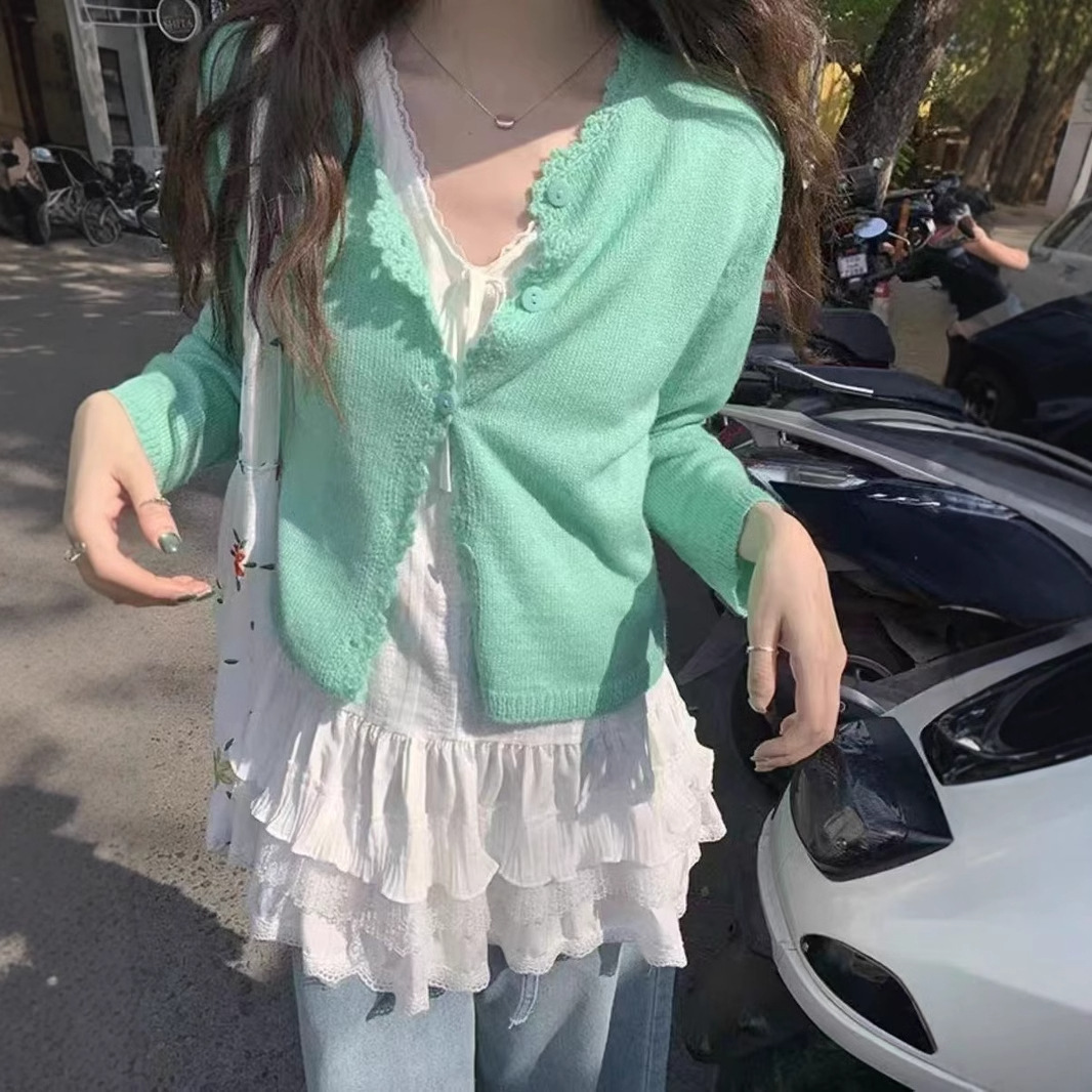 2025 봄 새 의상 느슨한 한국 스웨터 재킷 라싱 칼라 캐주얼 카디건 여성 스웨터스토어 가기