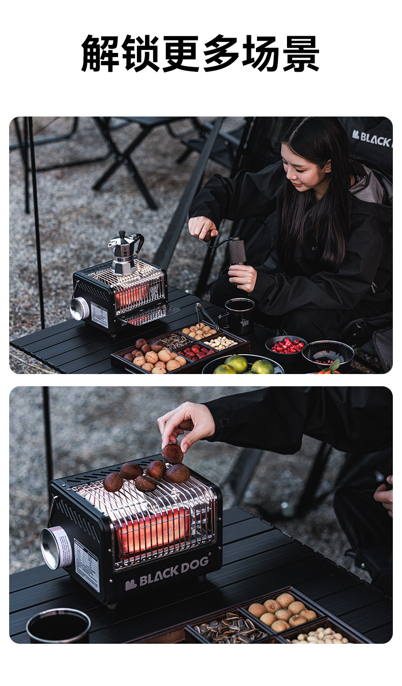 검은 개 야외 카세트 난방 스토브 차 캠핑 텐트 야간 휴대용 히터