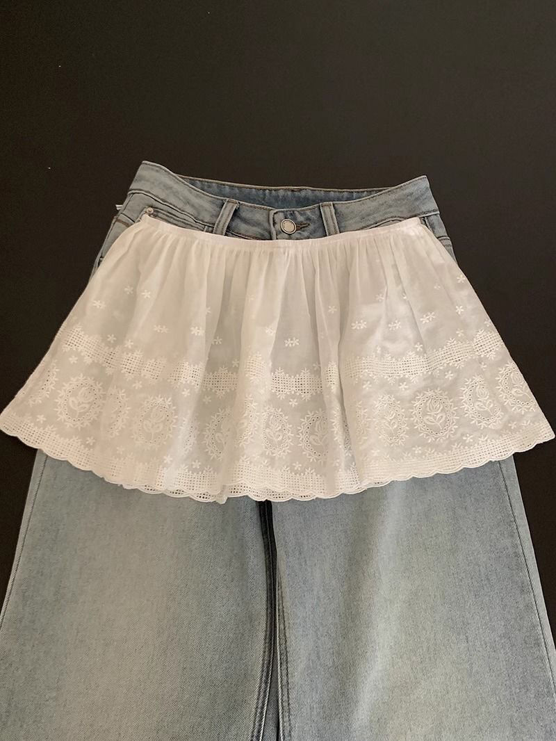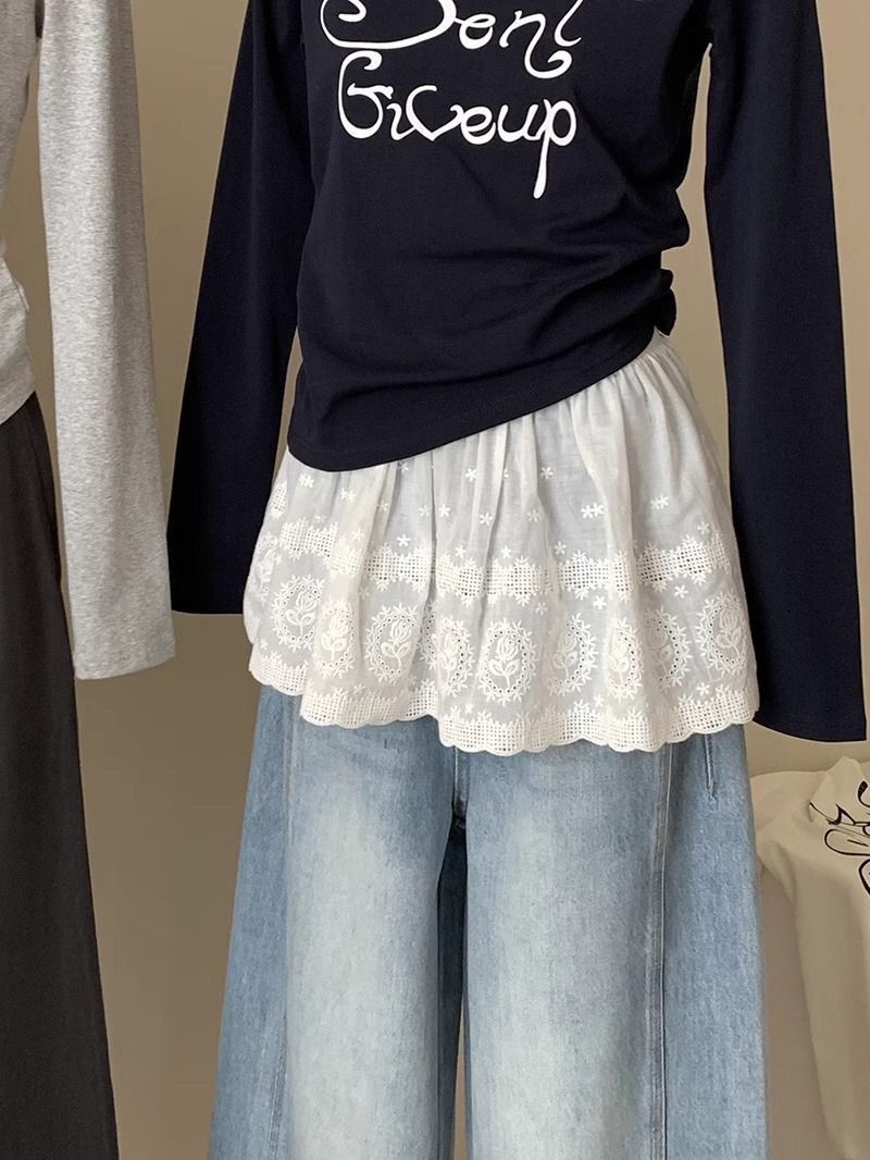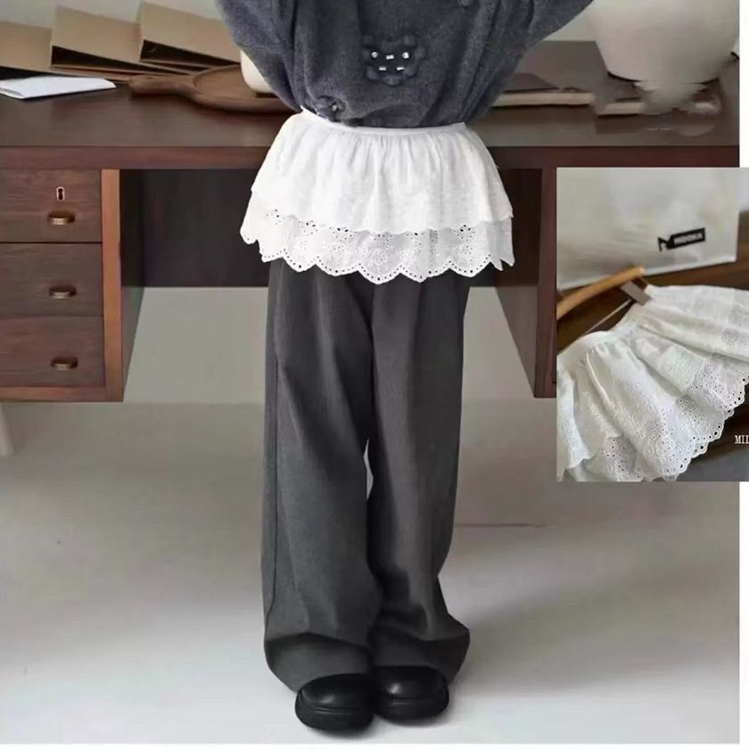 레이스 작은 방귀 커튼 바닥 스커트 소녀 가을과 겨울 새로운 탄성 허리 안티 라이트 접이식 스커트 0190A040스토어 가기