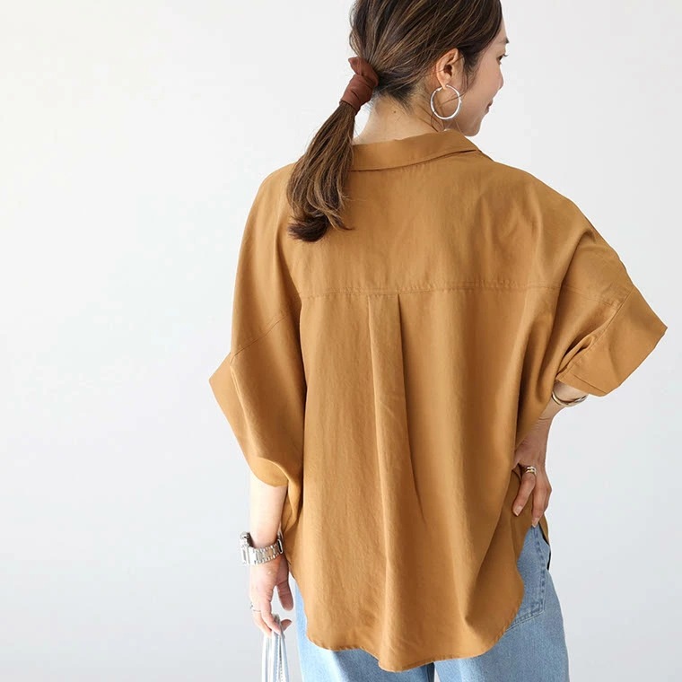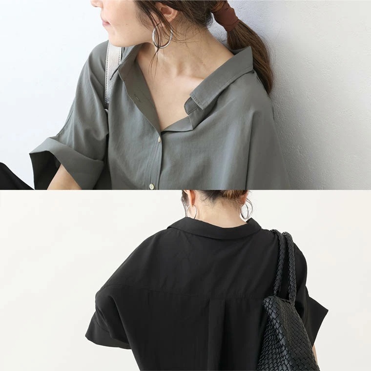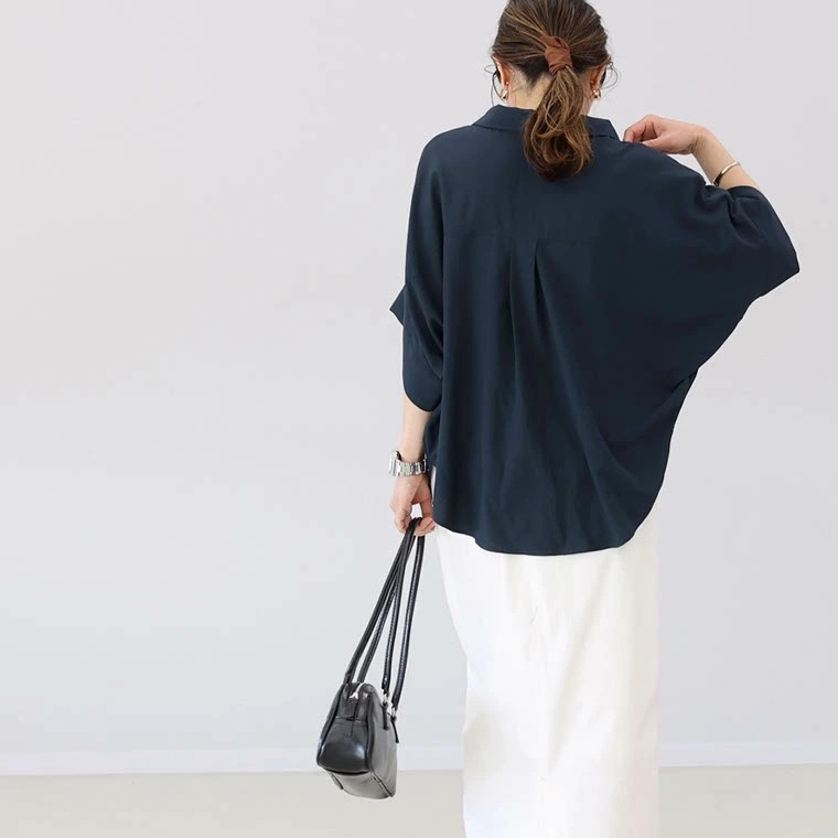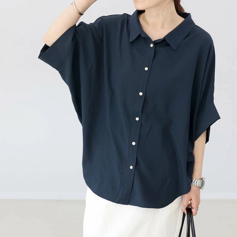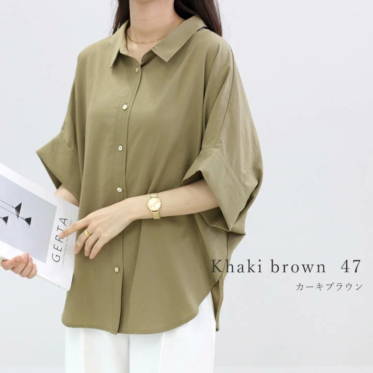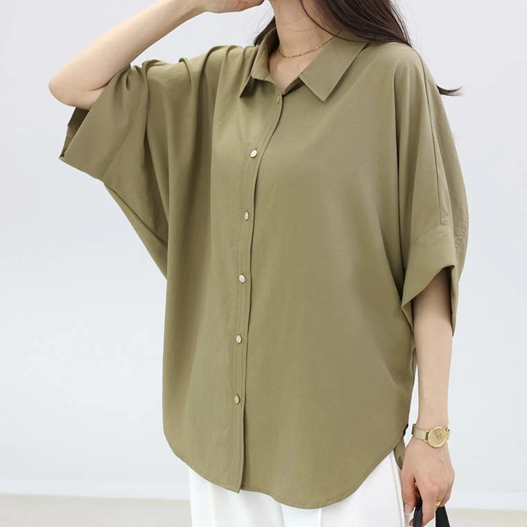 재고 있음, 해외 무역, 2025 일본 신상 여름옷, 라펠 디자인, 루즈핏, 슬림 효과, 단색, 배트 슬리브 셔츠, 7가지 색상스토어 가기
