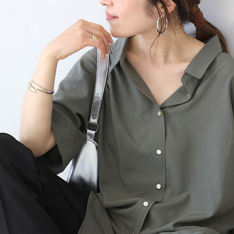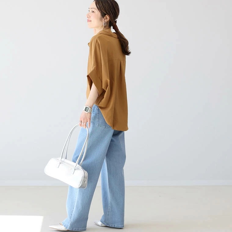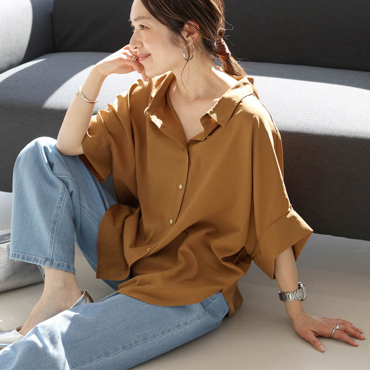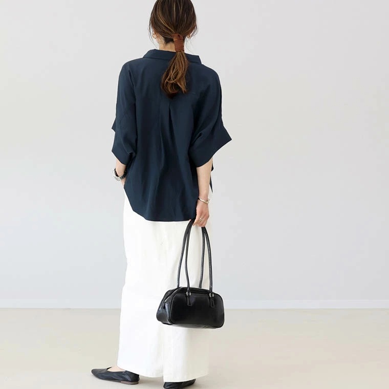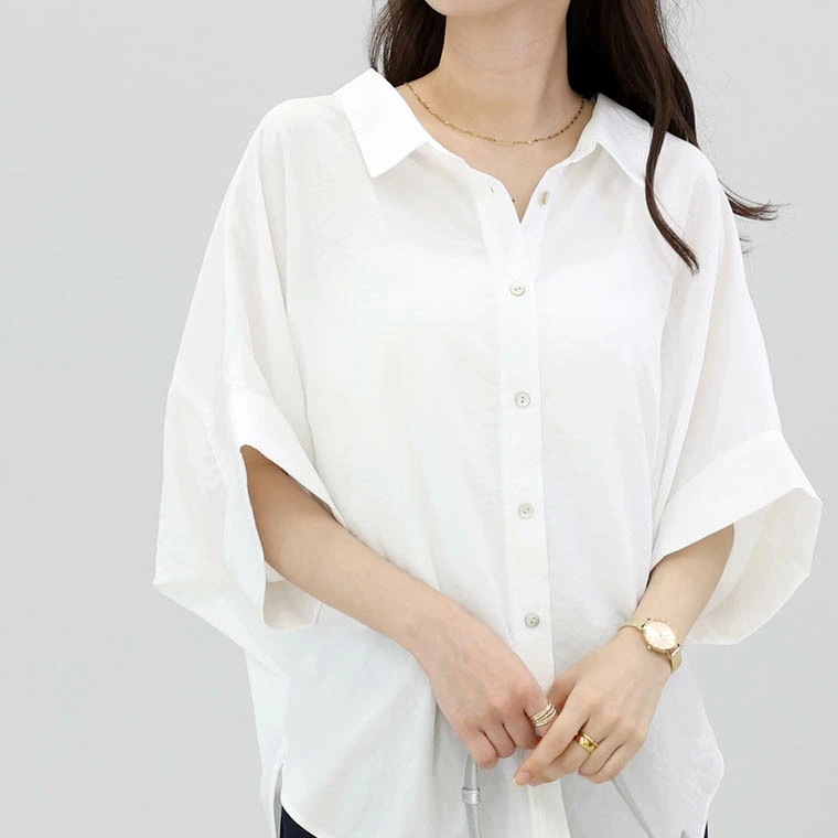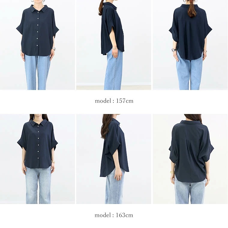 재고 있음, 해외 무역, 2025 일본 신상 여름옷, 라펠 디자인, 루즈핏, 슬림 효과, 단색, 배트 슬리브 셔츠, 7가지 색상스토어 가기