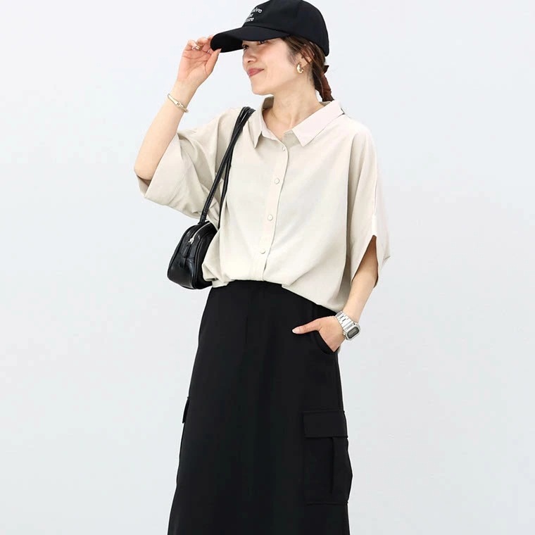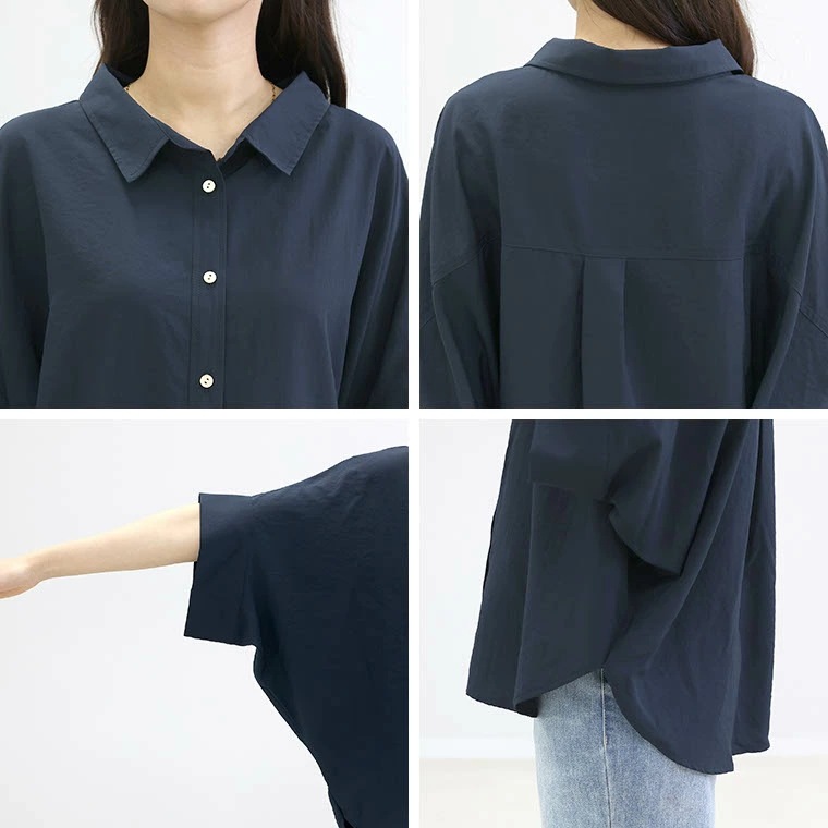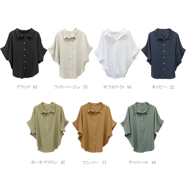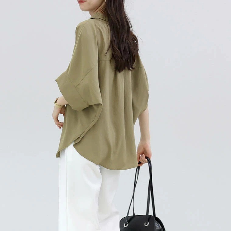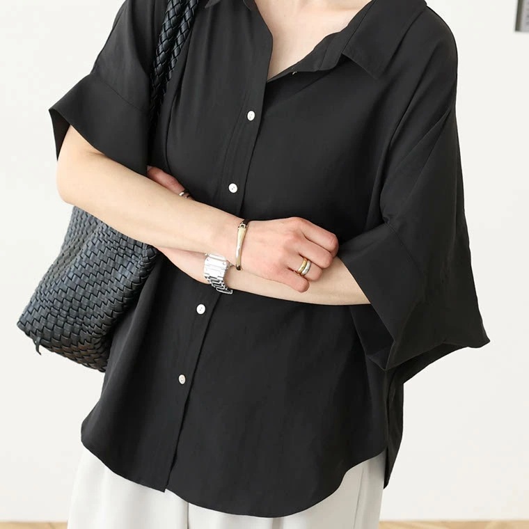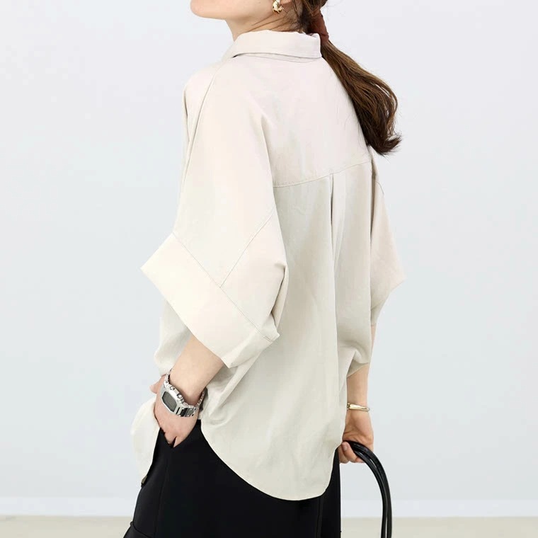 재고 있음, 해외 무역, 2025 일본 신상 여름옷, 라펠 디자인, 루즈핏, 슬림 효과, 단색, 배트 슬리브 셔츠, 7가지 색상