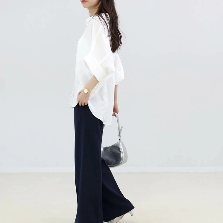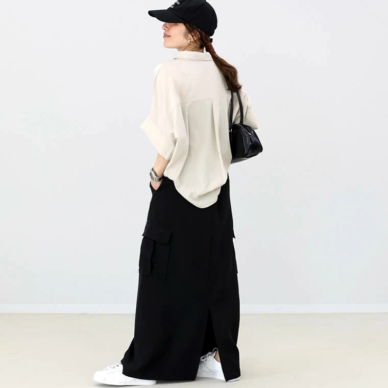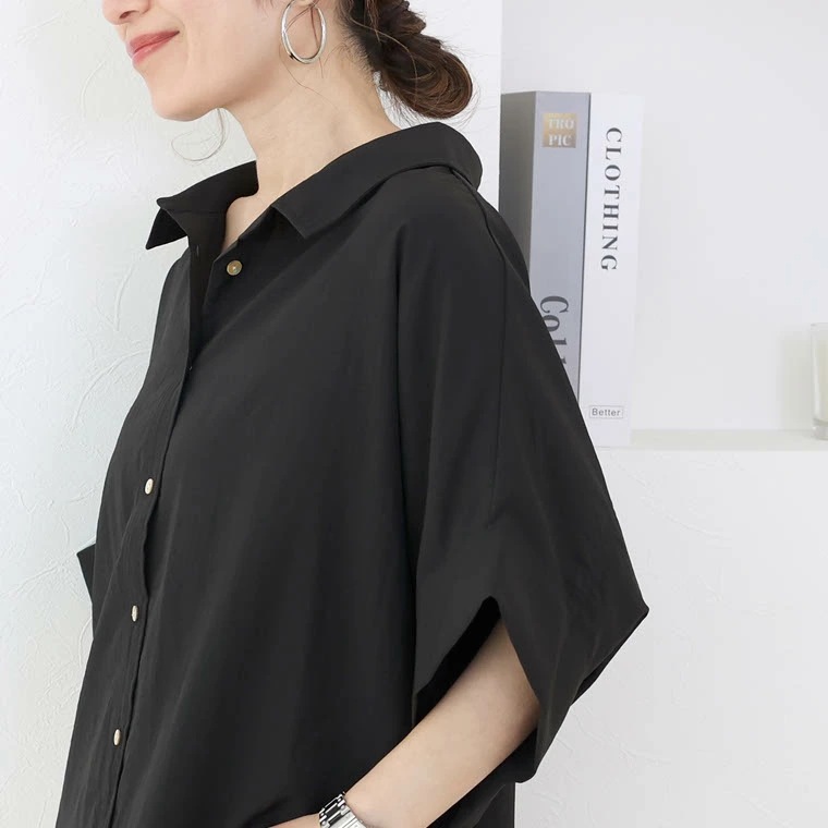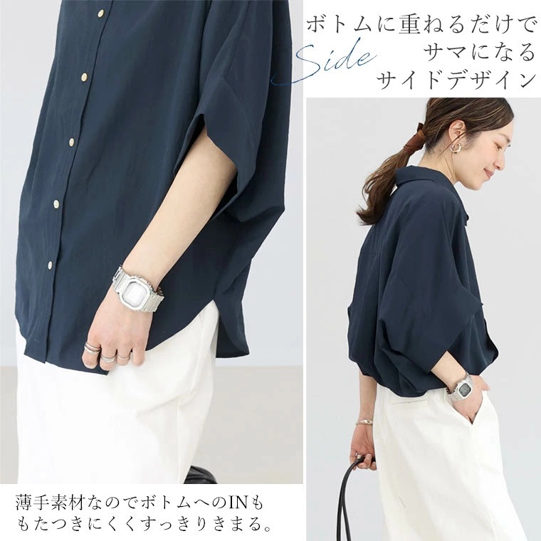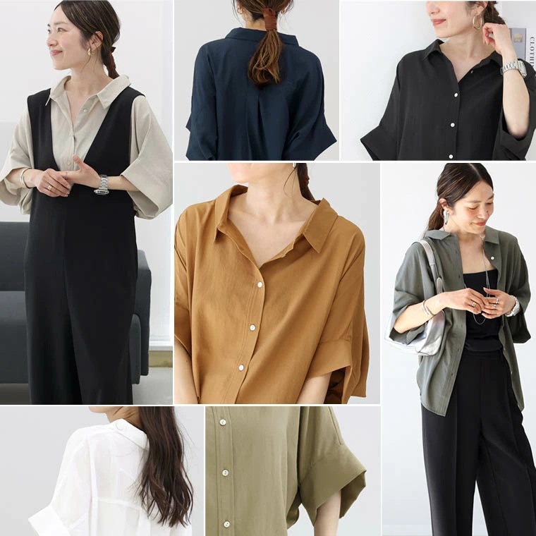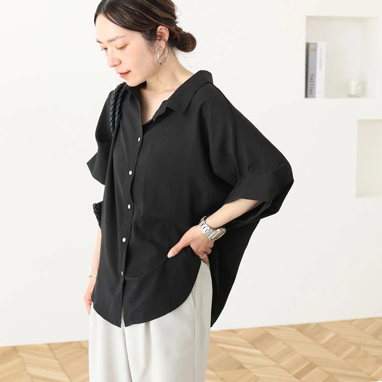 재고 있음, 해외 무역, 2025 일본 신상 여름옷, 라펠 디자인, 루즈핏, 슬림 효과, 단색, 배트 슬리브 셔츠, 7가지 색상