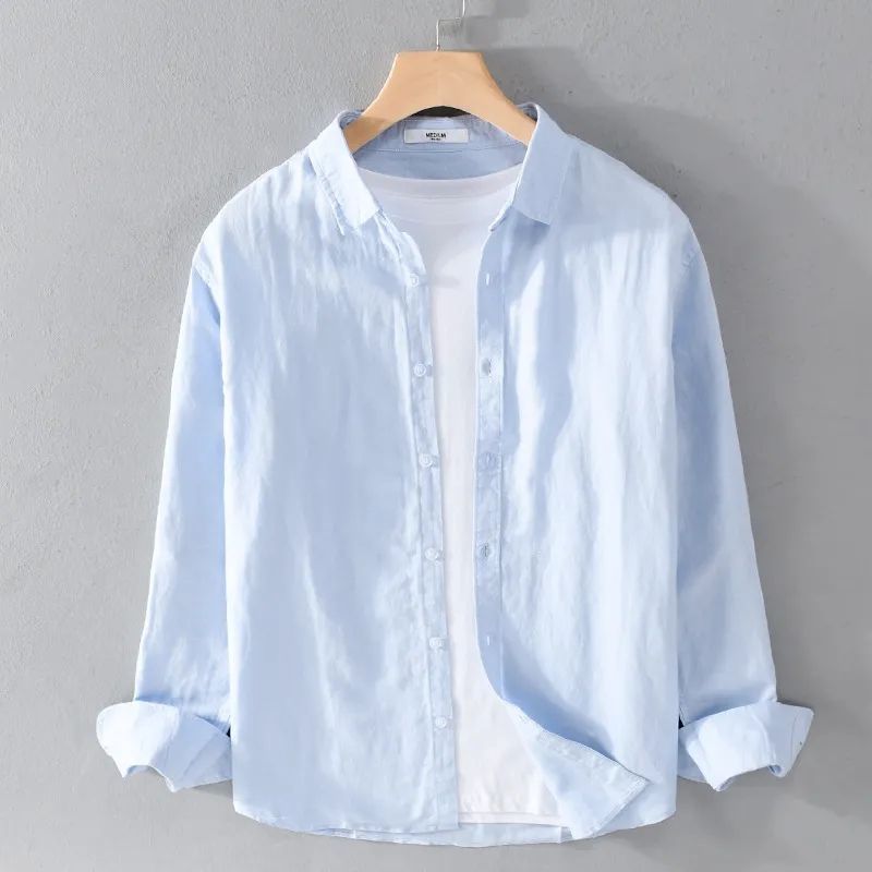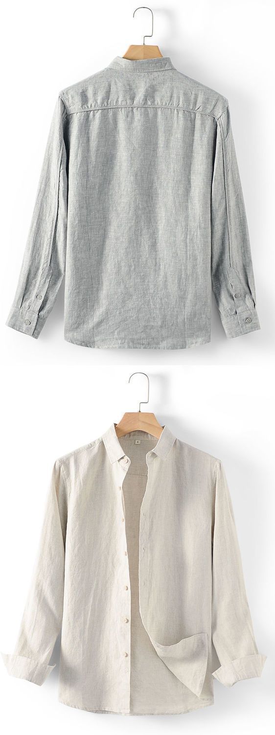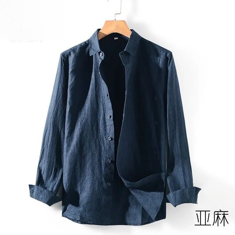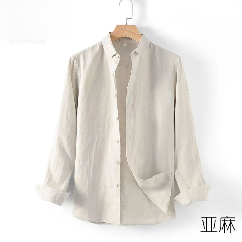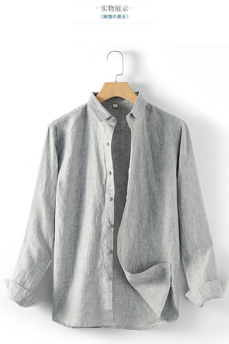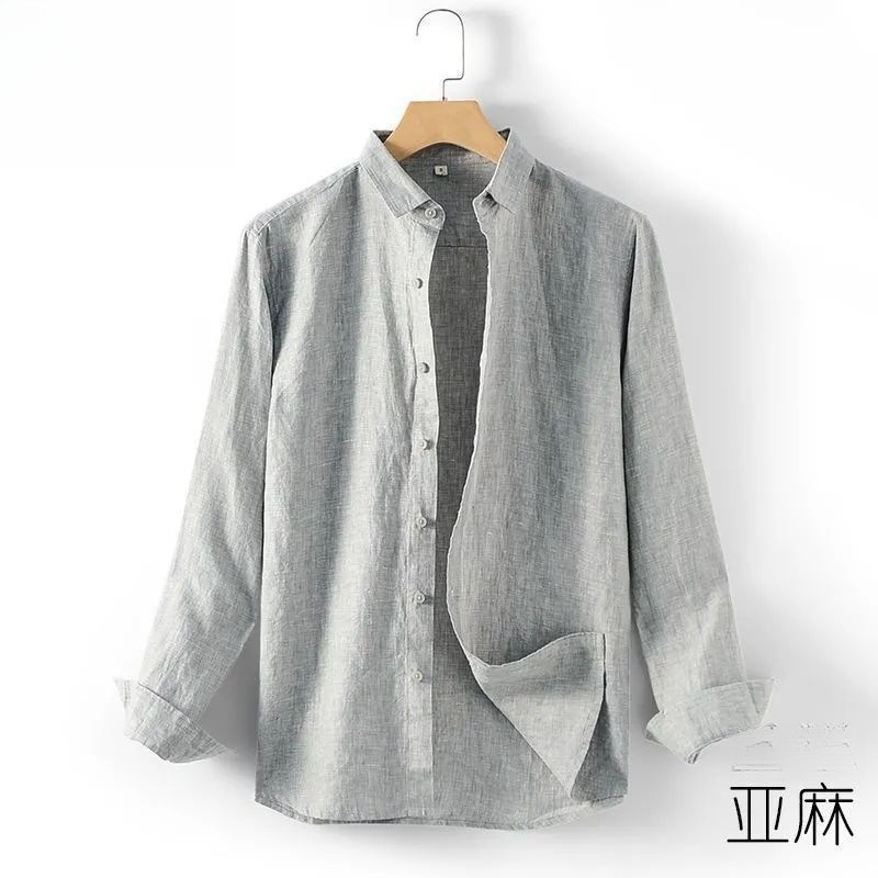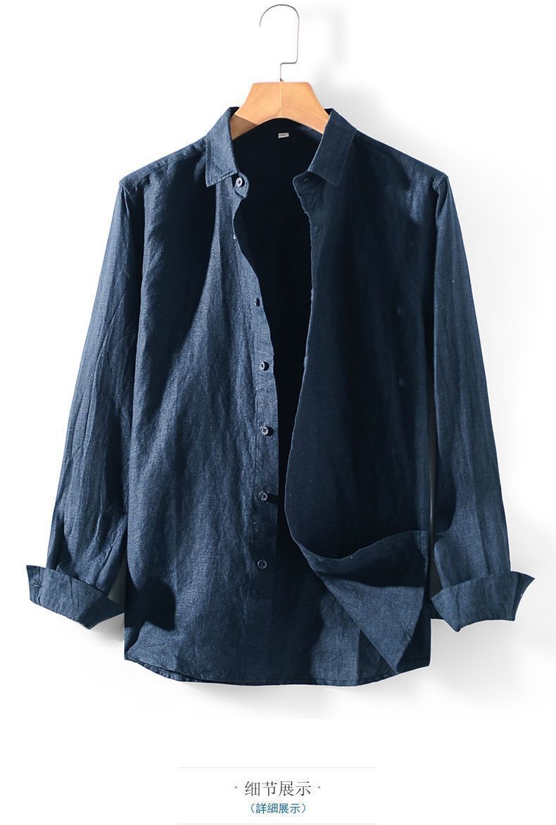 리넨 셔츠 남성용 옷깃 긴팔 새면 및 리넨 셔츠 얇은 느슨한 캐주얼 봄과 가을 남성용 셔츠 타이드스토어 가기