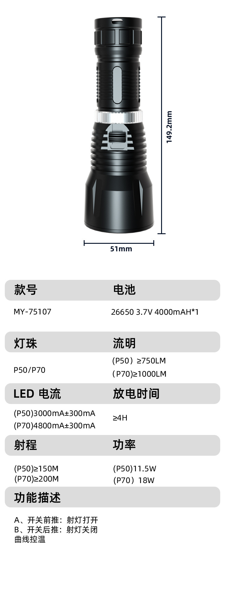 产品尺寸:51*51*149.2mm