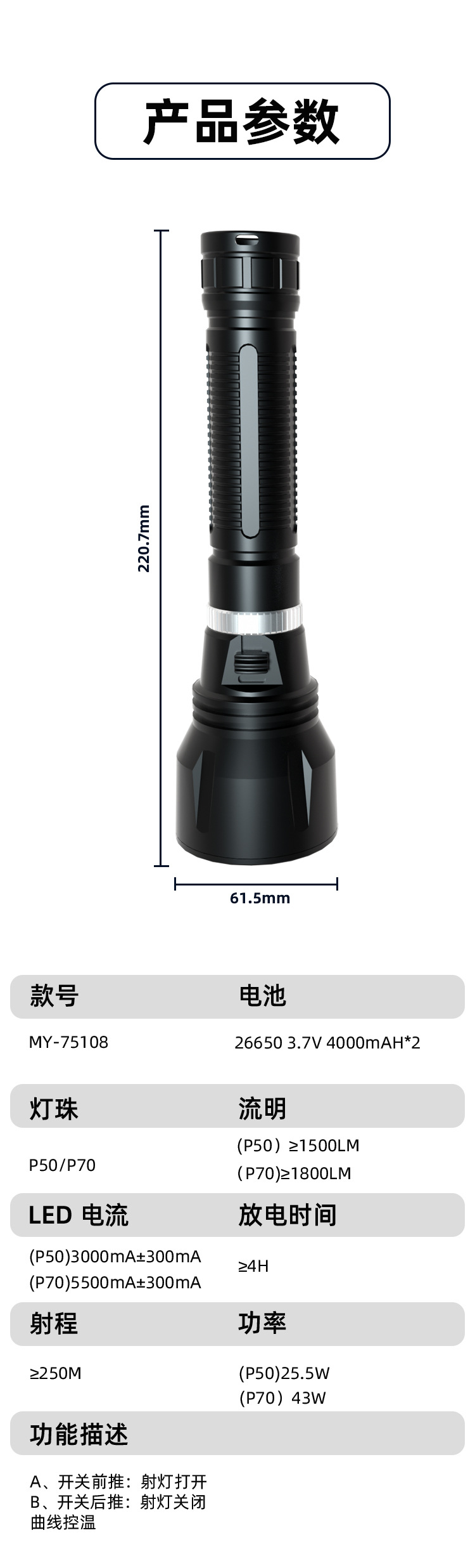 产品尺寸:61*61*220.7mm