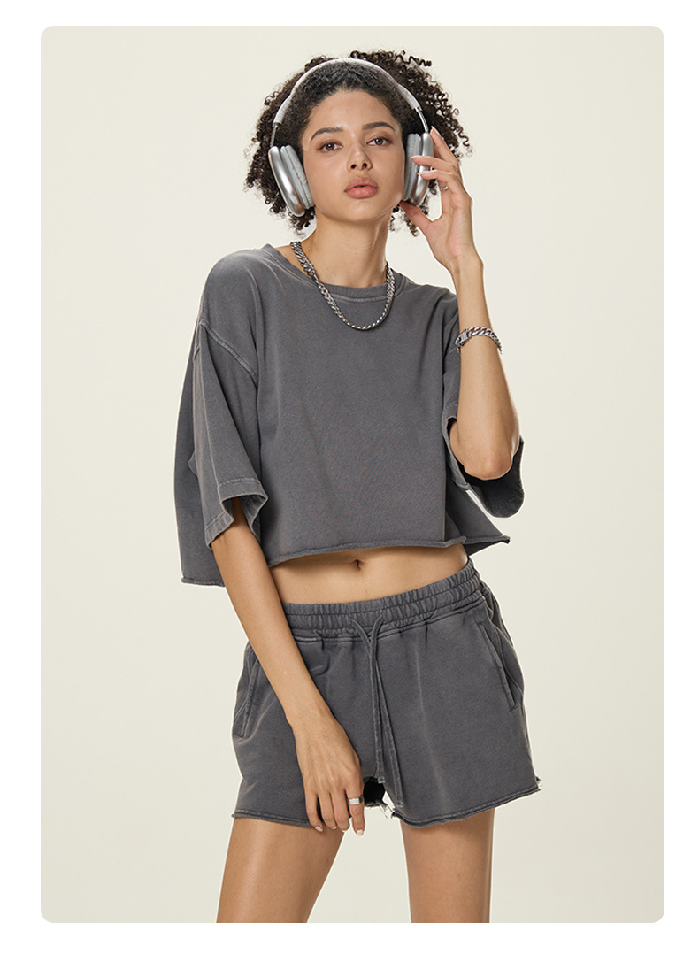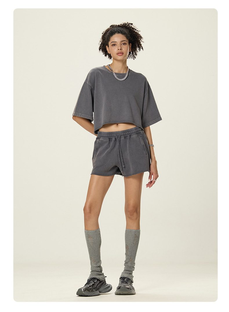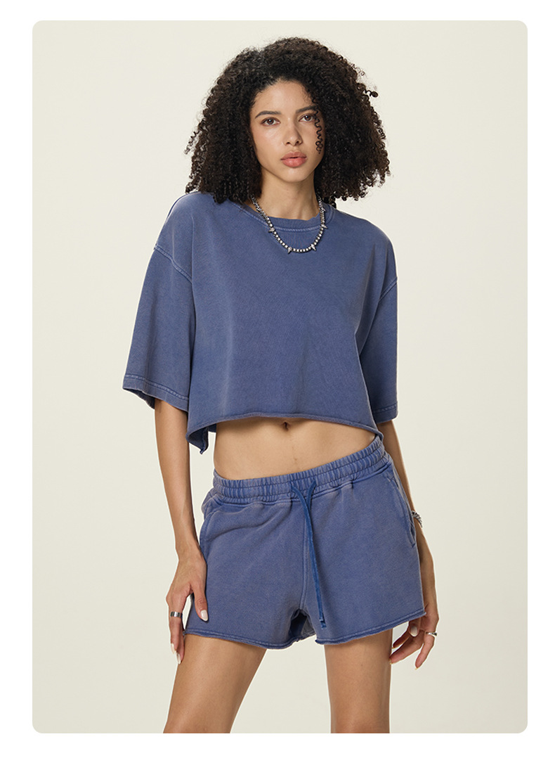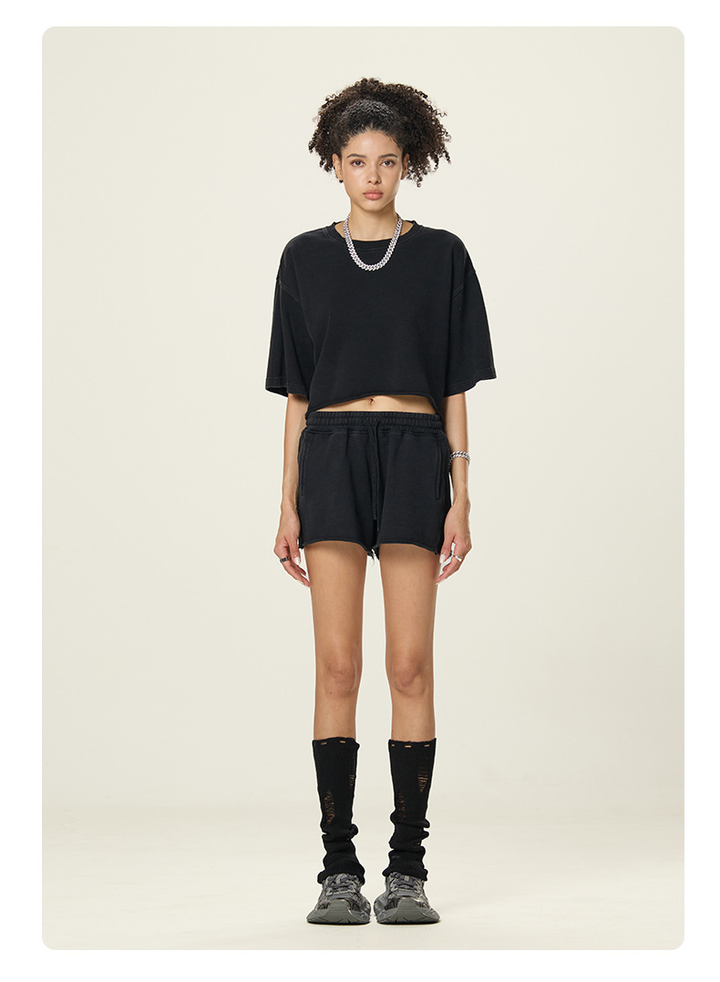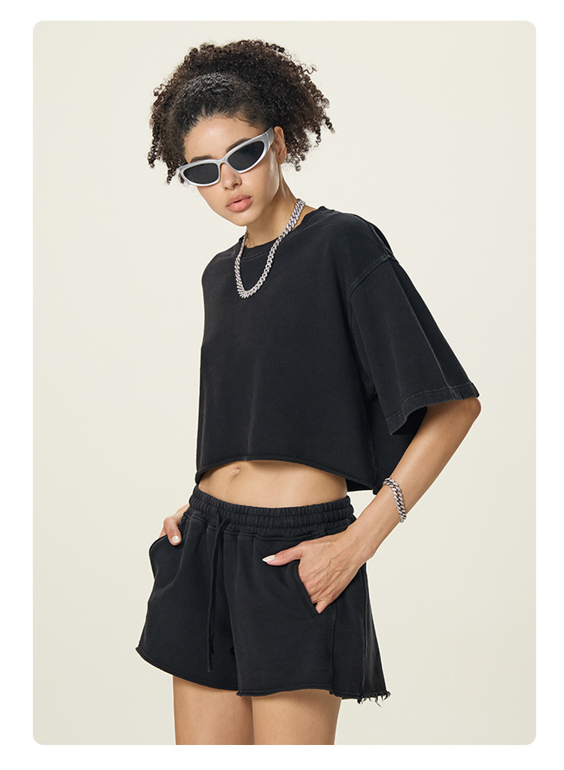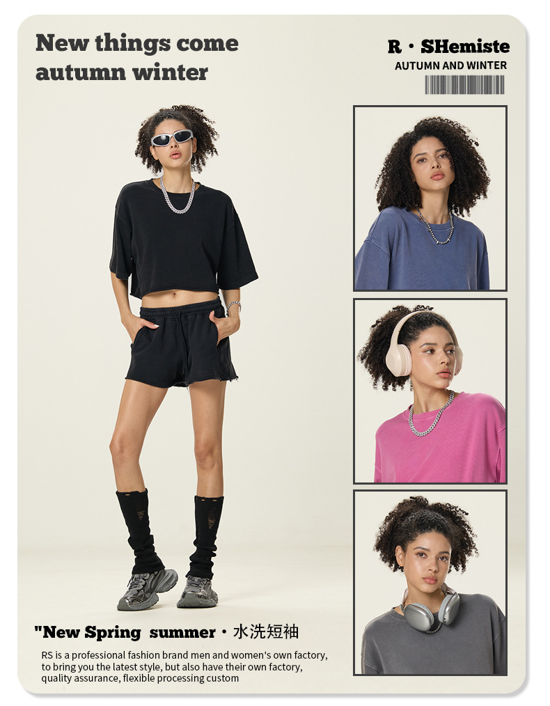 RS 여성복 | 국경 씻은 짧은 넓은 넓은 짧은 소매 스파이스 걸스 TEE 여름 280G 면 유럽과 미국은 오래 된 짧은 소매 티셔츠 여성을
