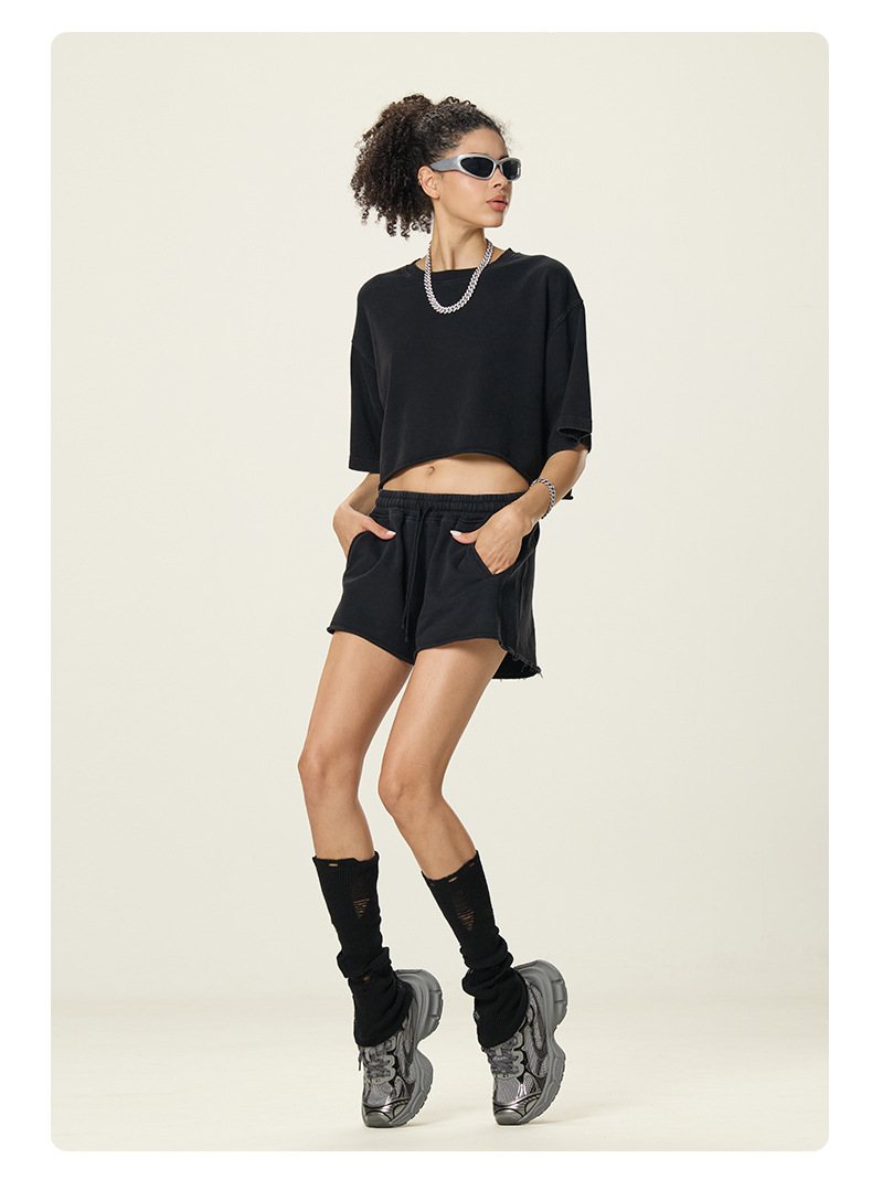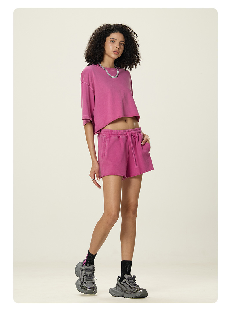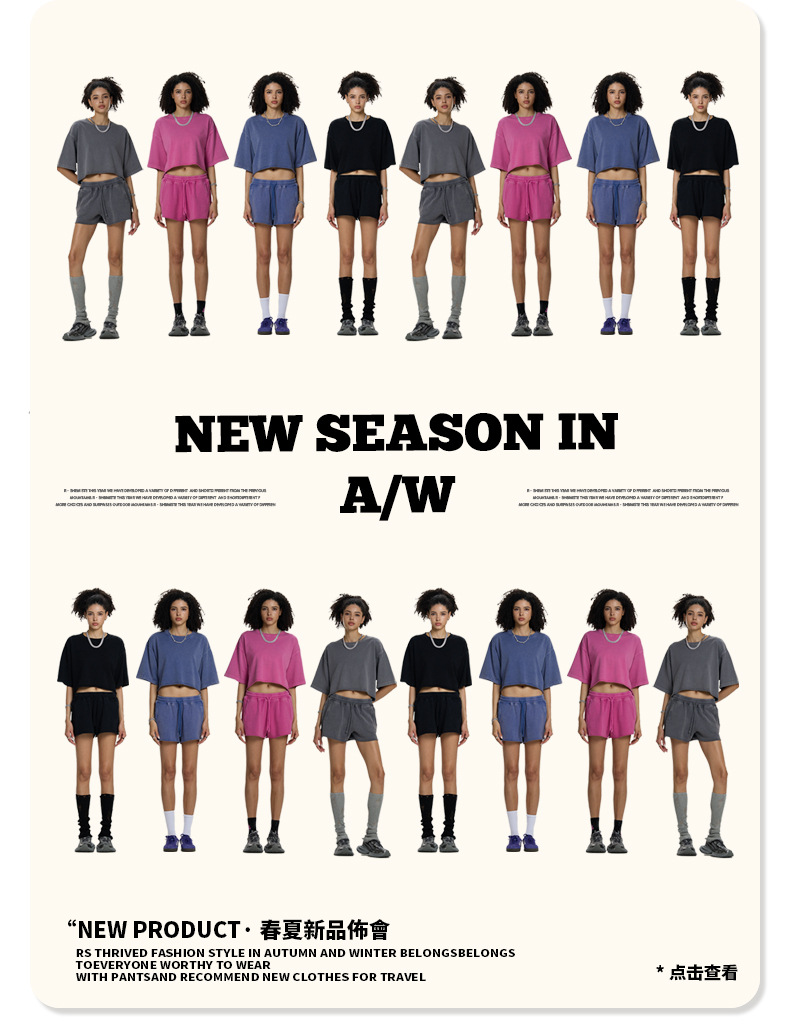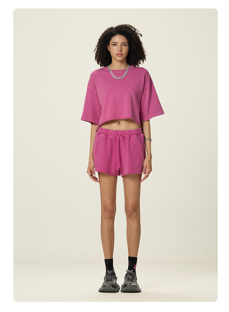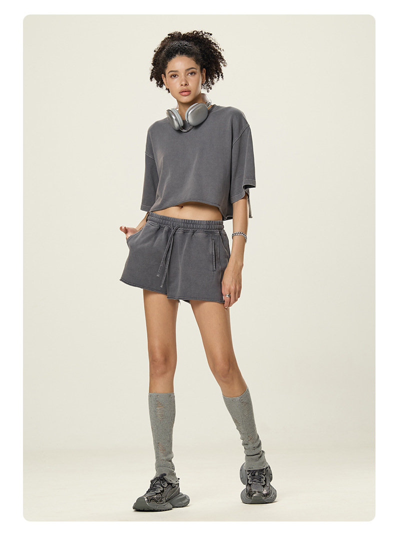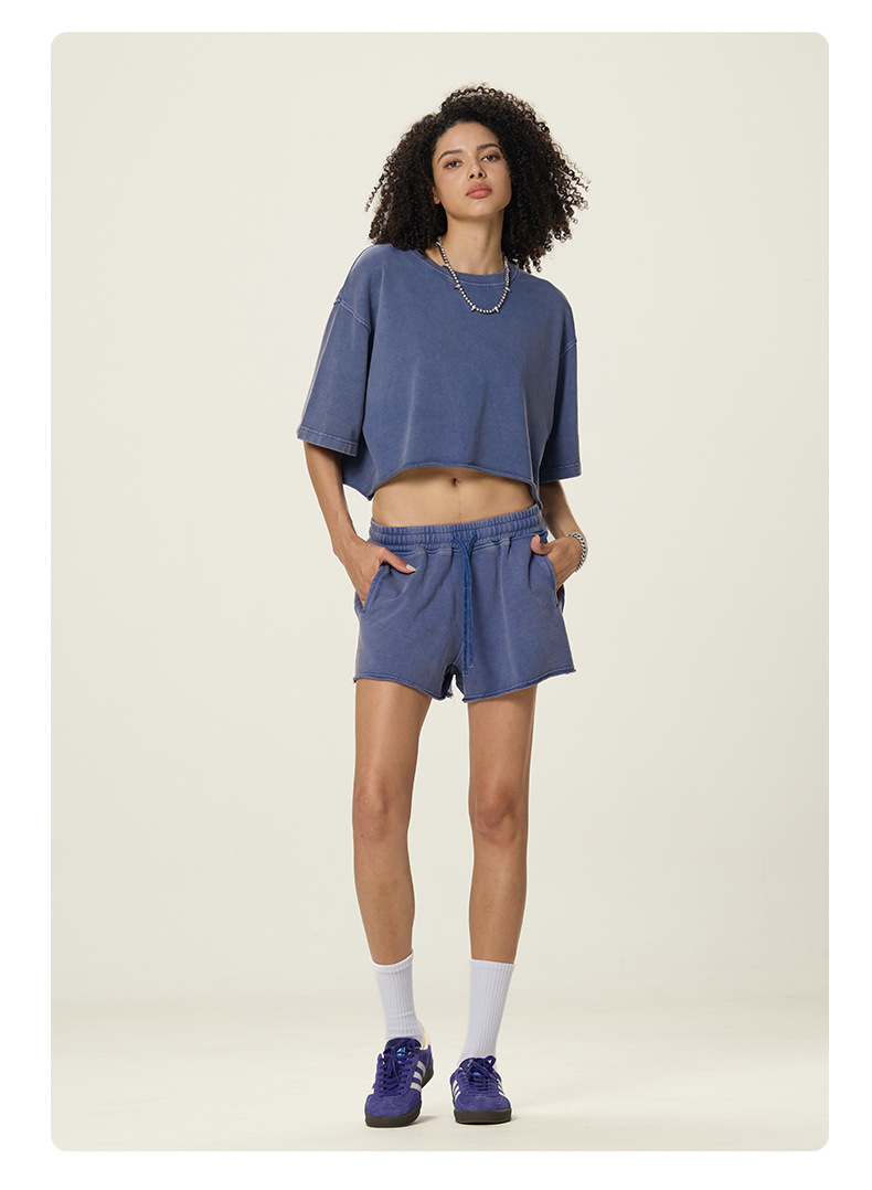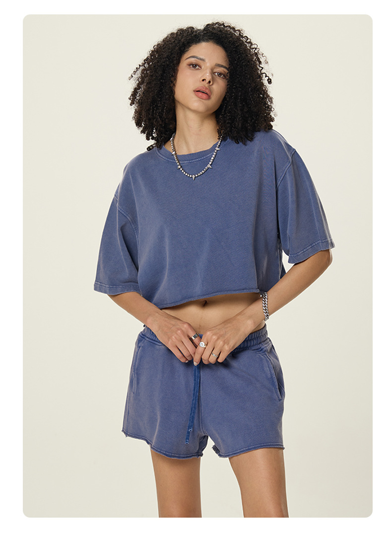 RS 여성복 | 국경 씻은 짧은 넓은 넓은 짧은 소매 스파이스 걸스 TEE 여름 280G 면 유럽과 미국은 오래 된 짧은 소매 티셔츠 여성을