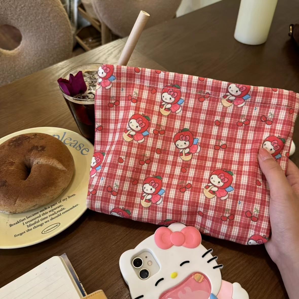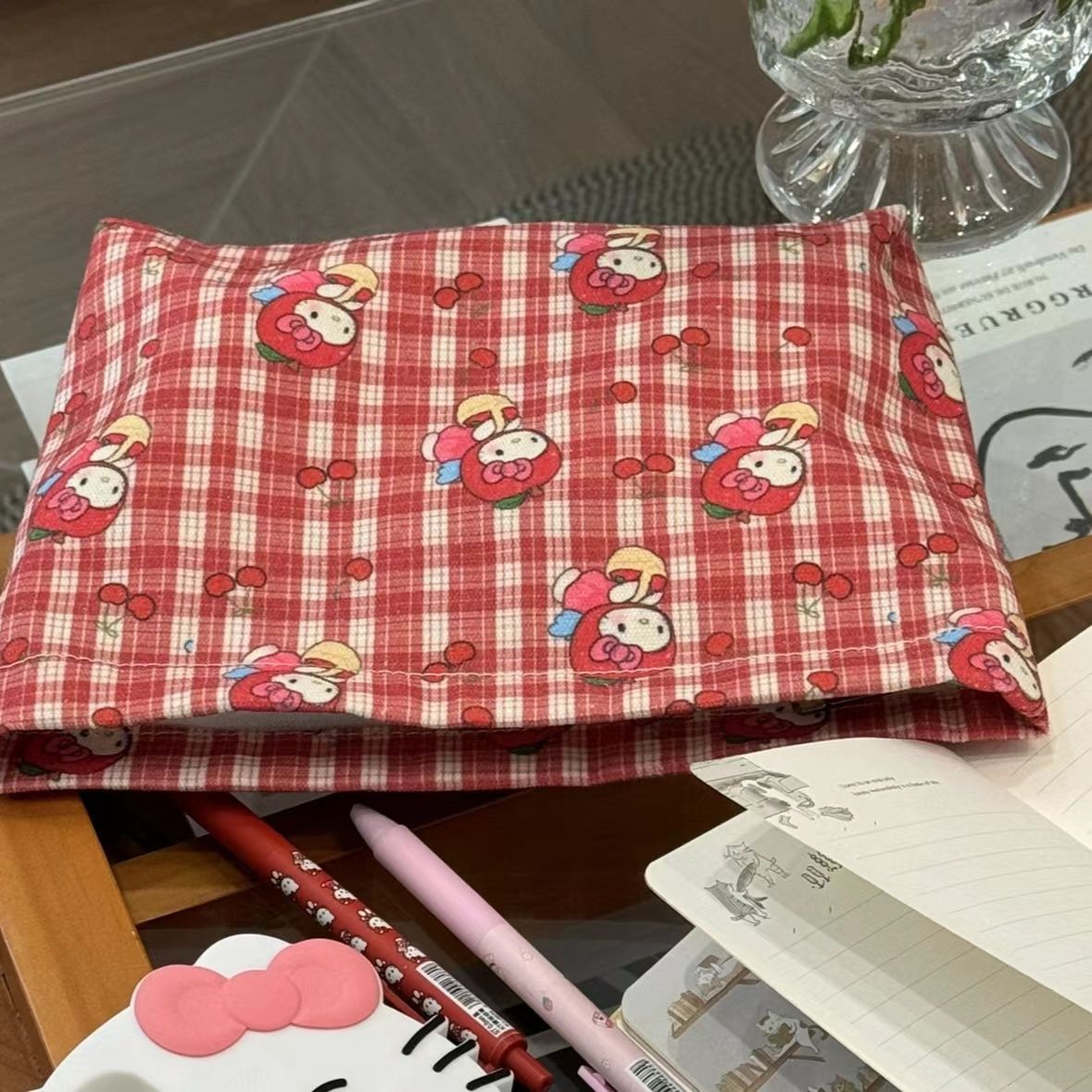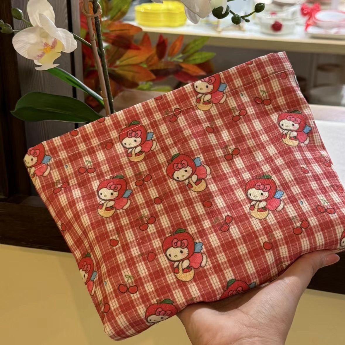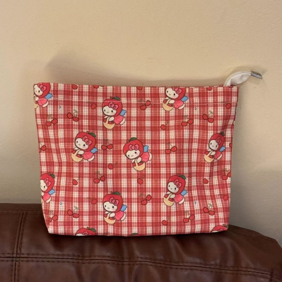 • 화장품 가방 레드 체크 키티
