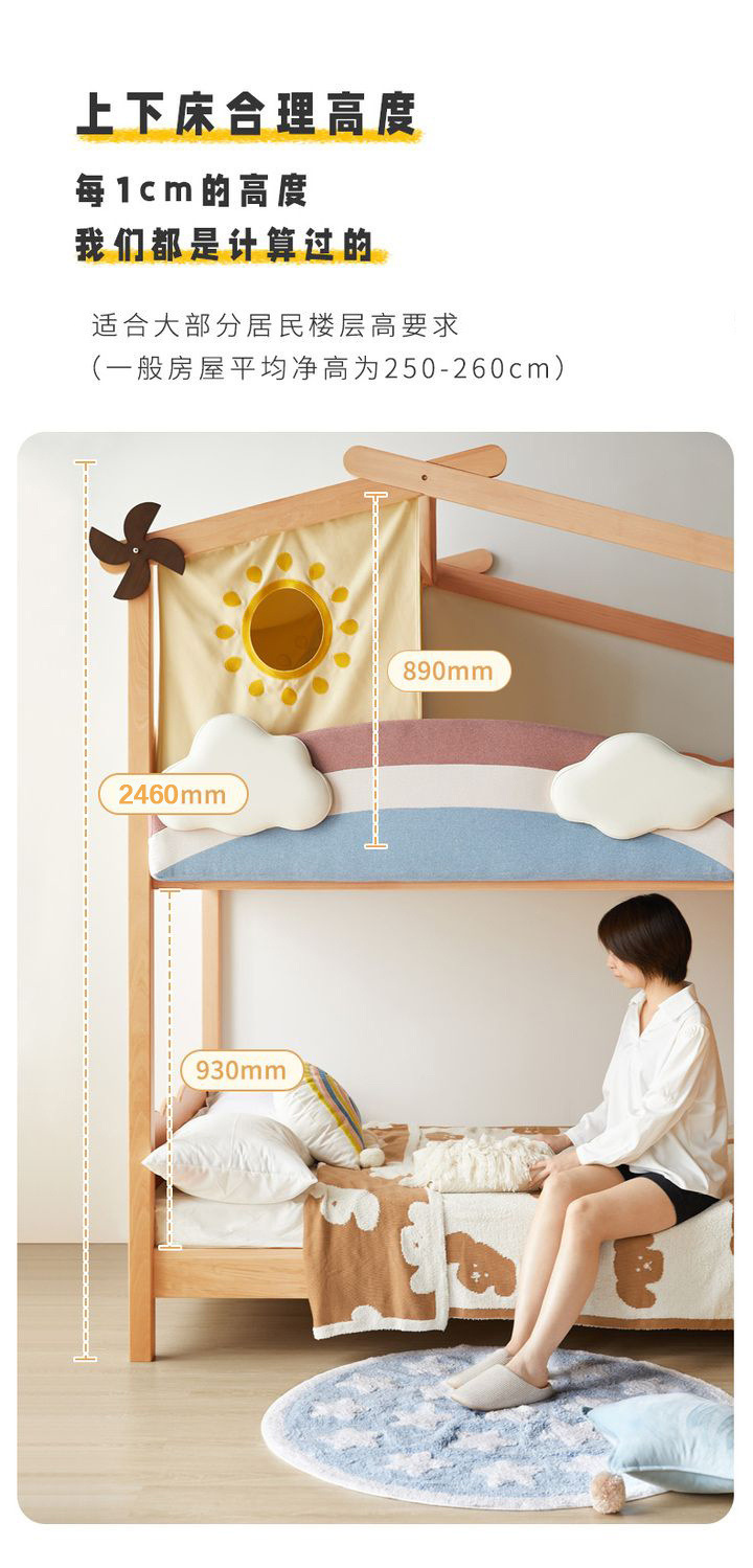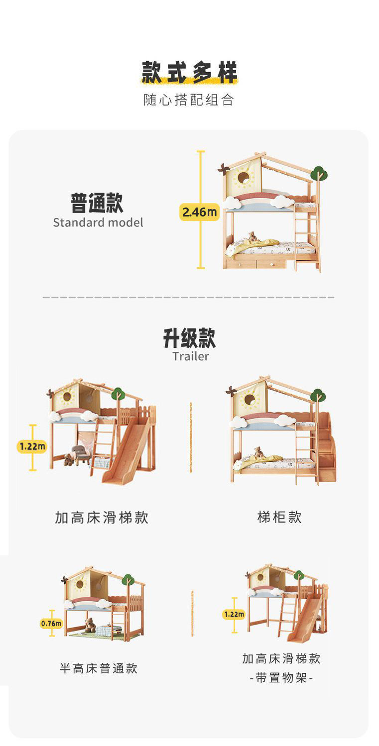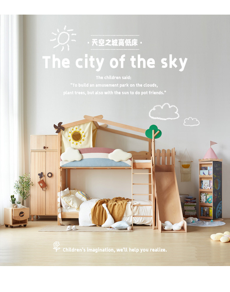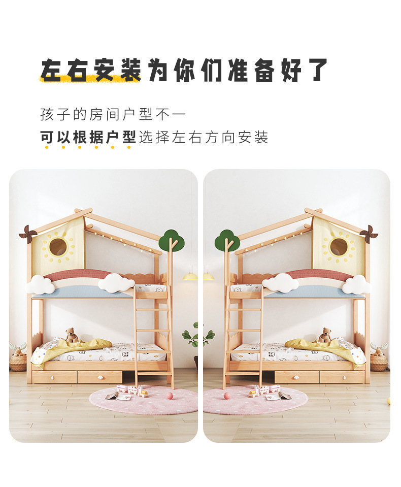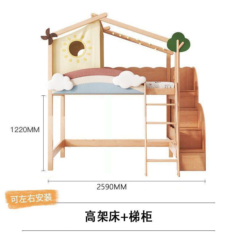 • 로프트 침대 + 사다리 캐비닛 [전체 원목으로 제작]