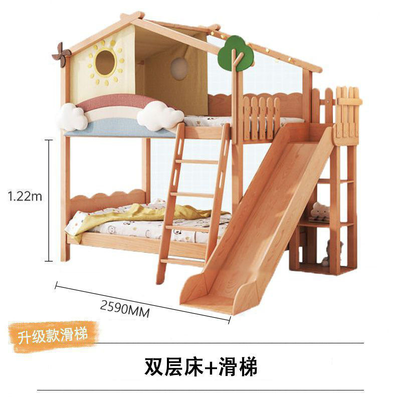 원목으로 제작된 동일한 폭의 어린이용 2층 침대, 트리하우스 슬라이드와 계단, 분리 가능한 2층 유아용 이층 침대