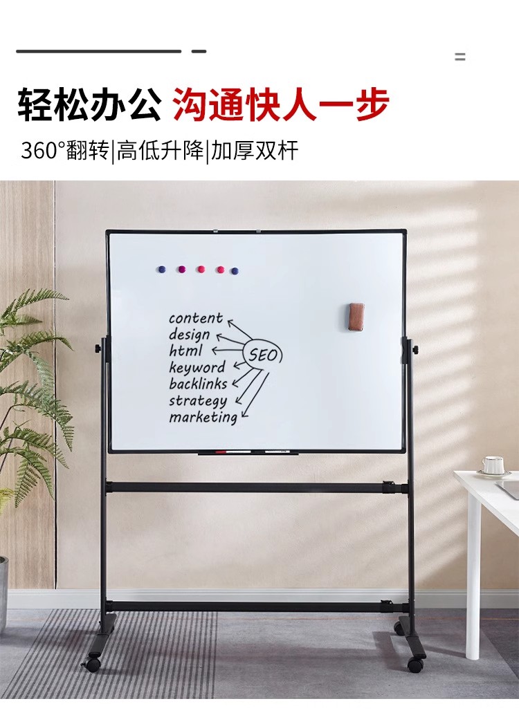 • [SF Express] 신형 알루미늄 프레임 블랙 90*120cm 강화 양면 원클릭 플립 화이트보드