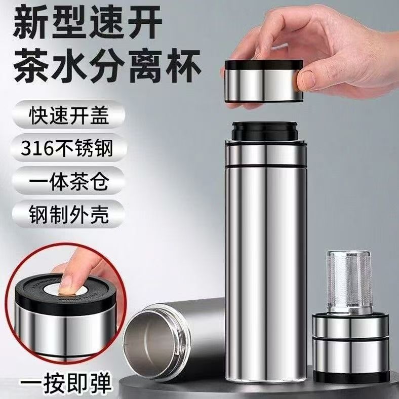 고급 1 버튼 오픈 뚜껑 보온병 컵 316 차 분리 스테인레스 스틸 물 컵 자동차 차 컵 대용량 휴대용스토어 가기