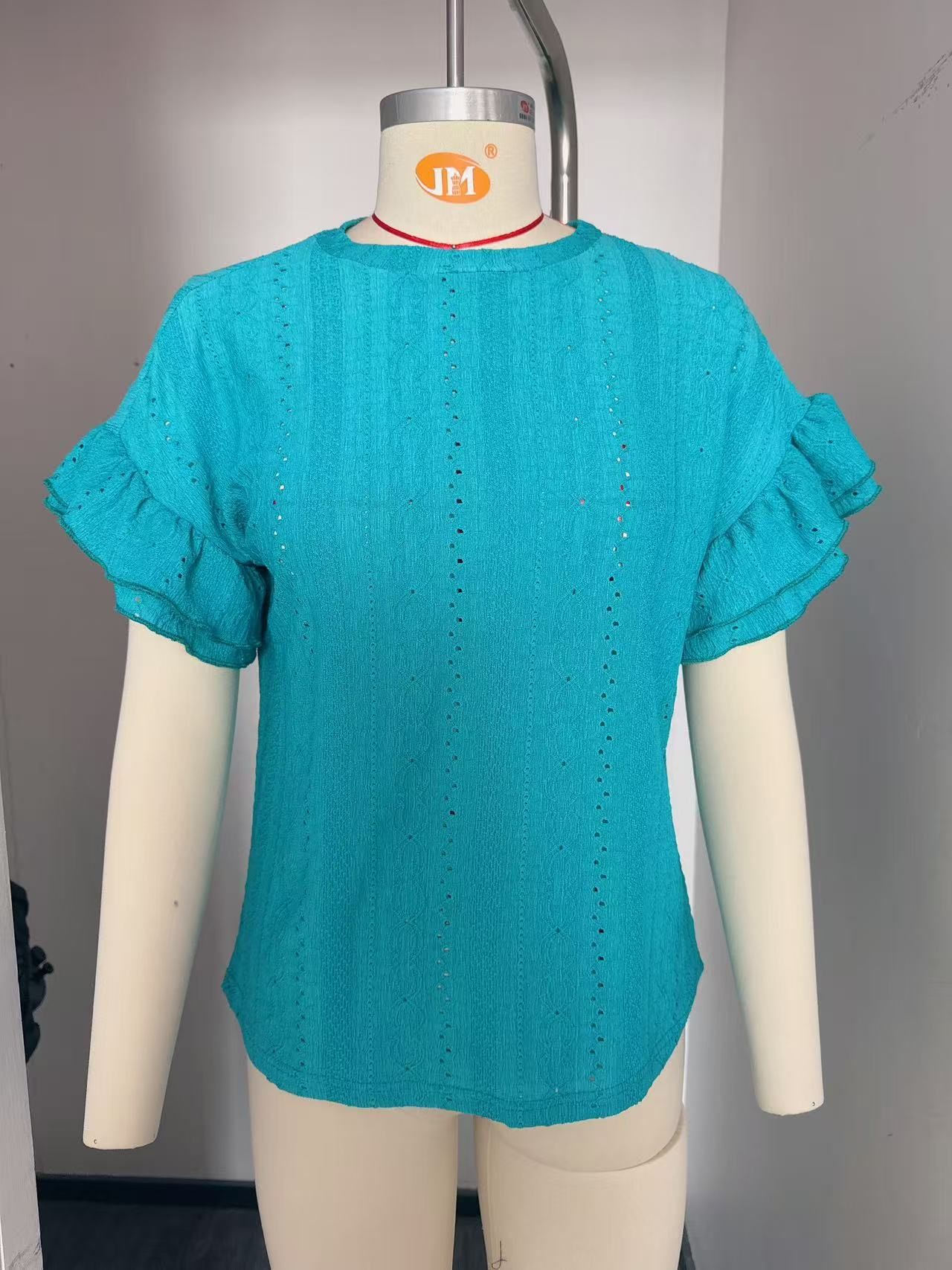 아마존 여성 의류 유럽과 미국의 국경 2025 여름 TK 새로운 단색 라운드 넥 로터스 리프 소매 반팔 티셔츠 탑