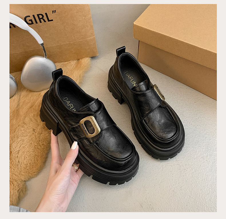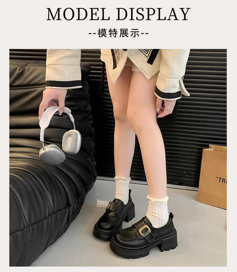영국 스타일 로퍼 여성의 2025 봄과 가을 새로운 두꺼운 힐 두꺼운 단일 빈티지 유행 작은 메리 제인 작은 가죽 신발스토어 가기