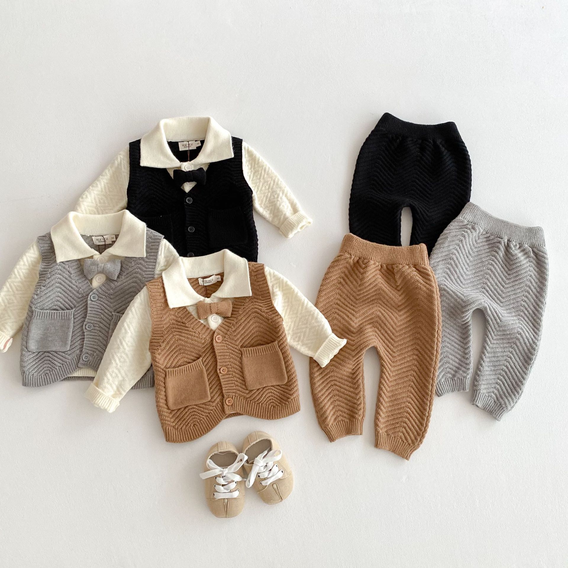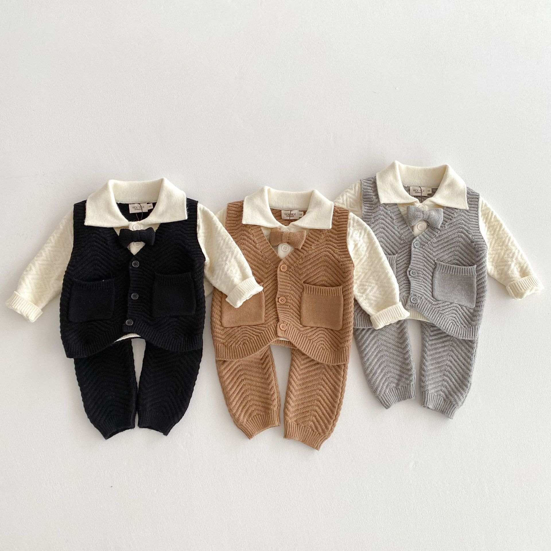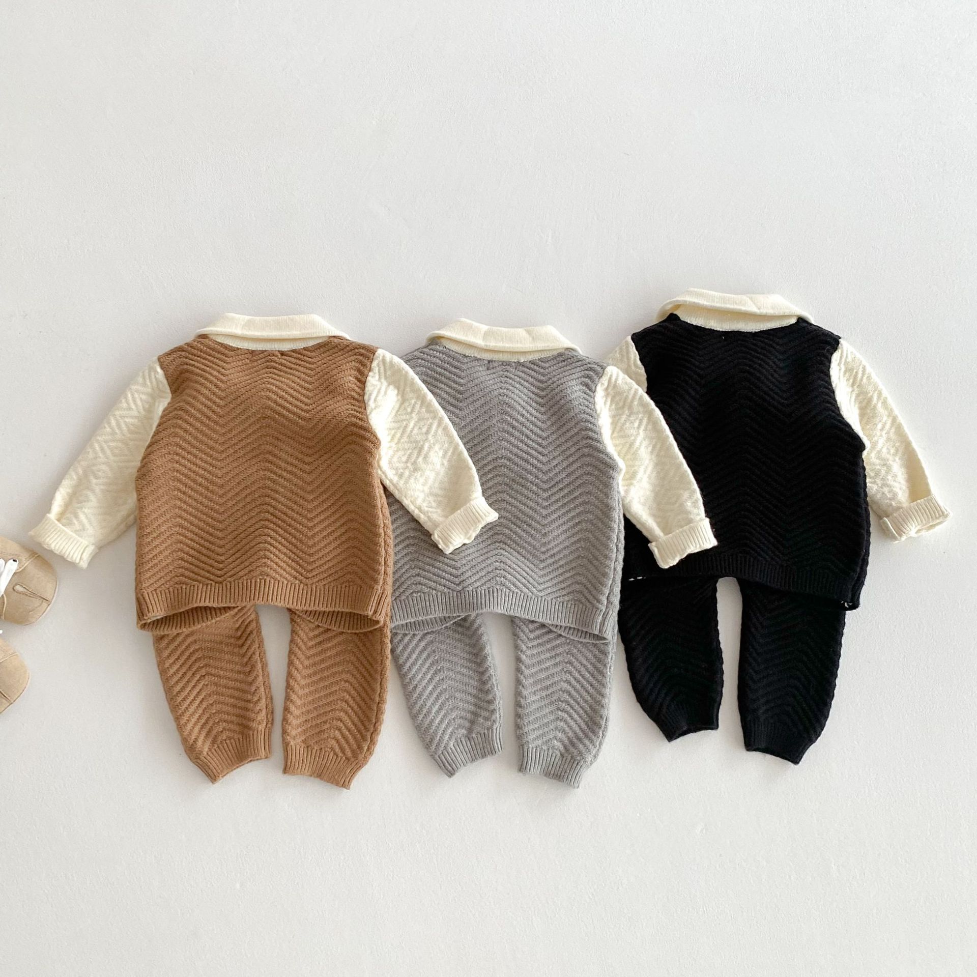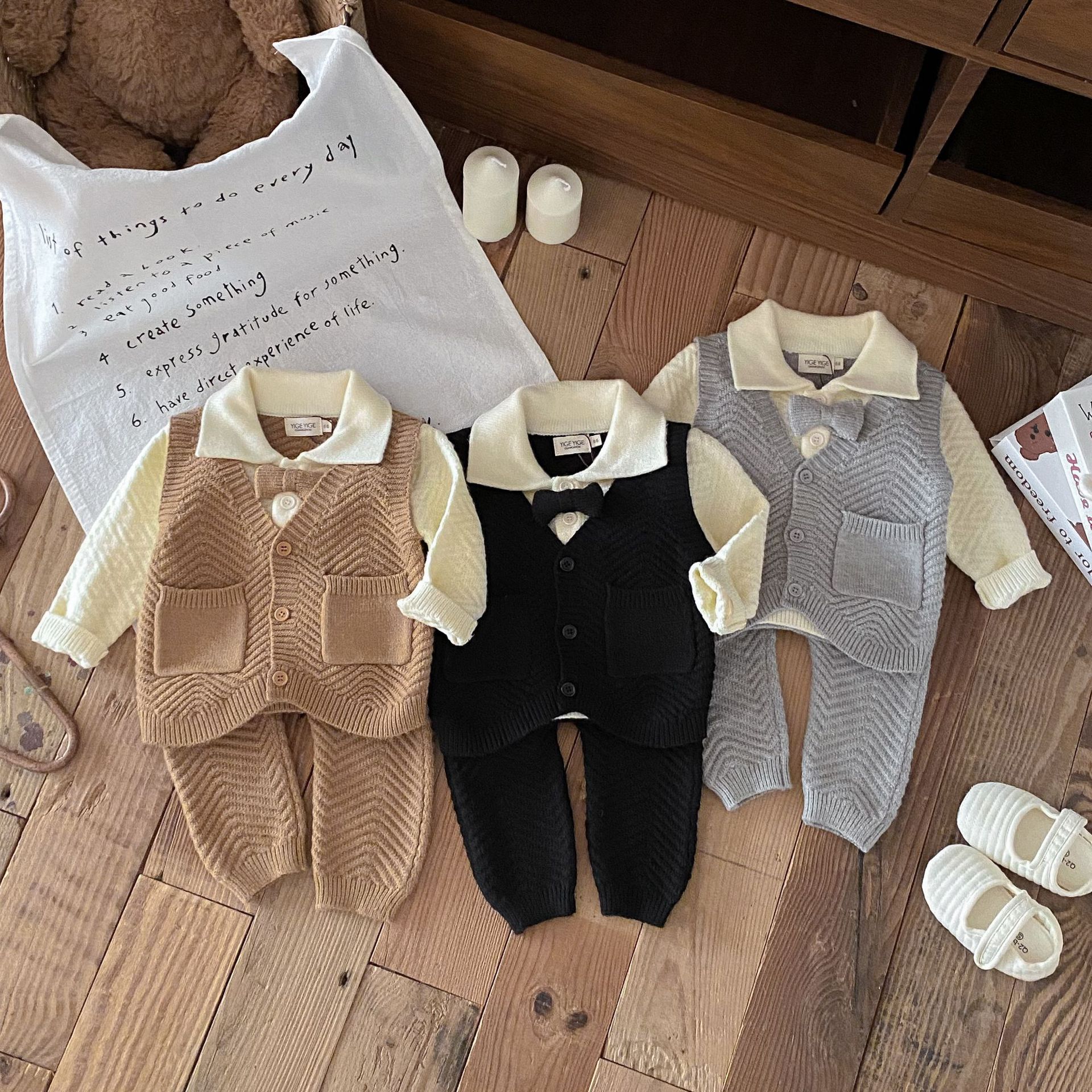 Ins 새로운 아기 소년 3 색 스웨터 아기 나들이 니트 양복